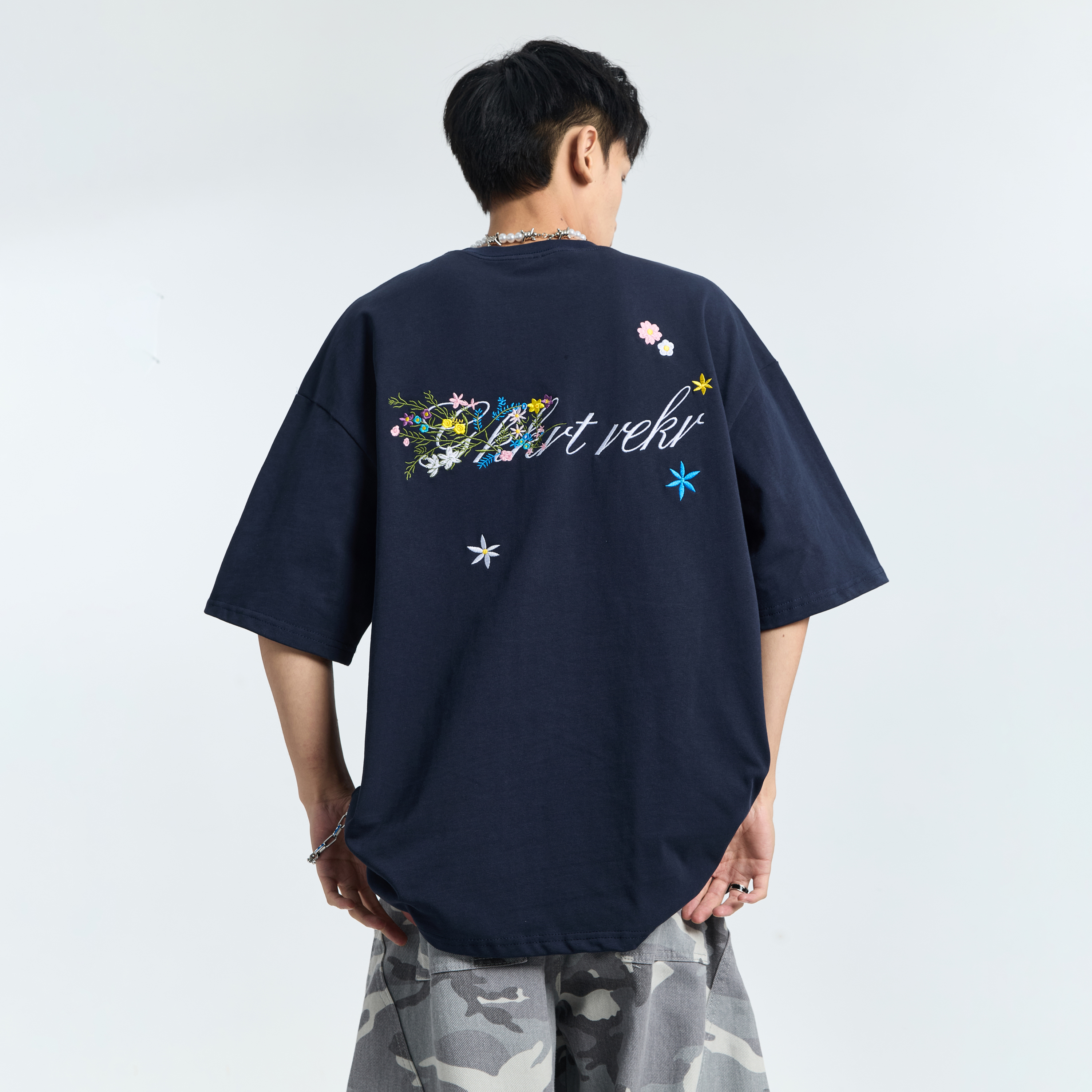 GKKRT潮牌手写花卉刺绣短袖T恤