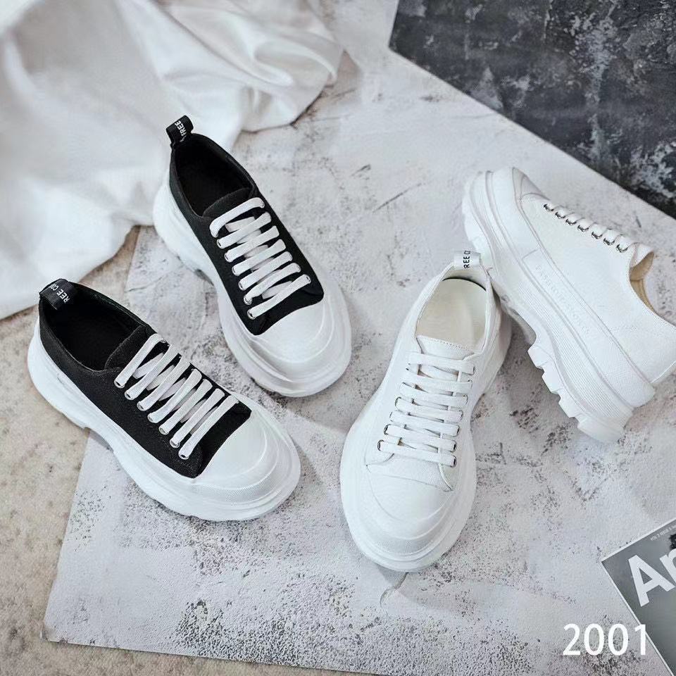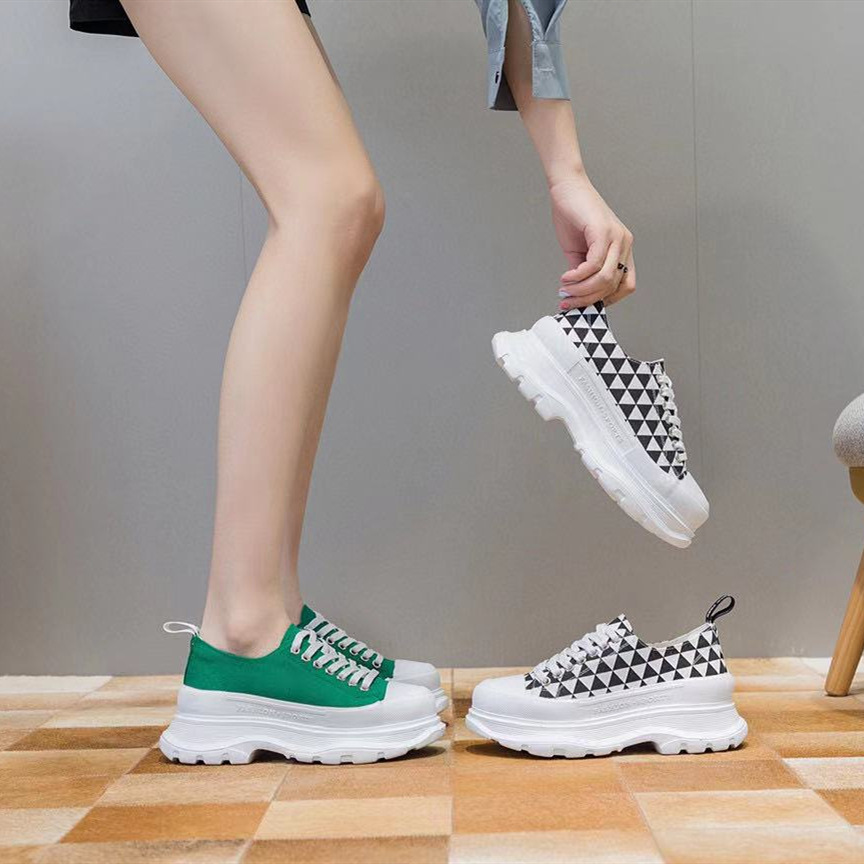 厚底帆布鞋女新款百搭休闲松糕鞋加绒增高ins老爹鞋小白鞋潮