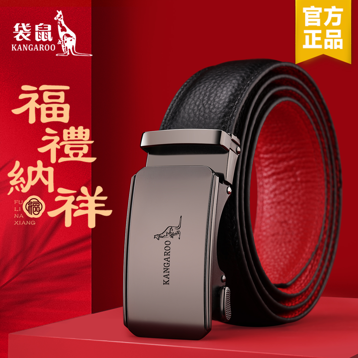 红腰带本命年自动扣男士头层牛皮裤带真皮马年礼物结婚属马皮带男