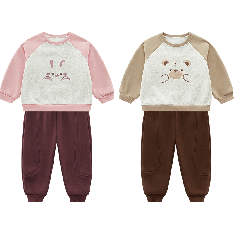 拉比儿童圆领服套装不倒绒保暖男女童长袖秋冬卫衣卫裤外出运动服