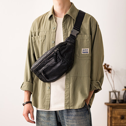 后步2026新款真皮胸包男ins个性斜跨百搭运动头层牛皮小背包潮牌