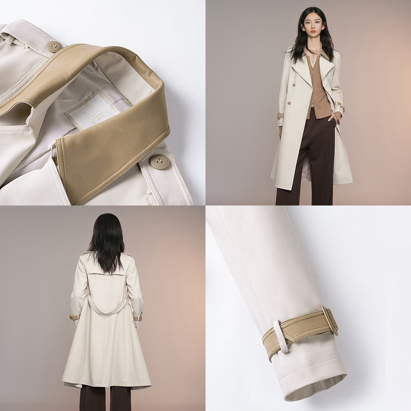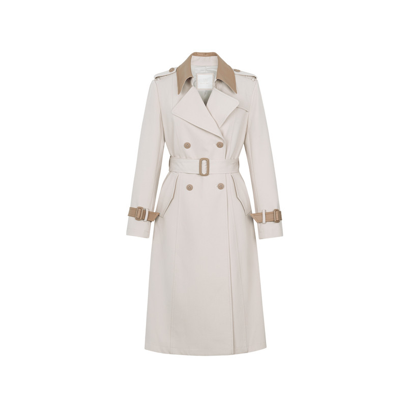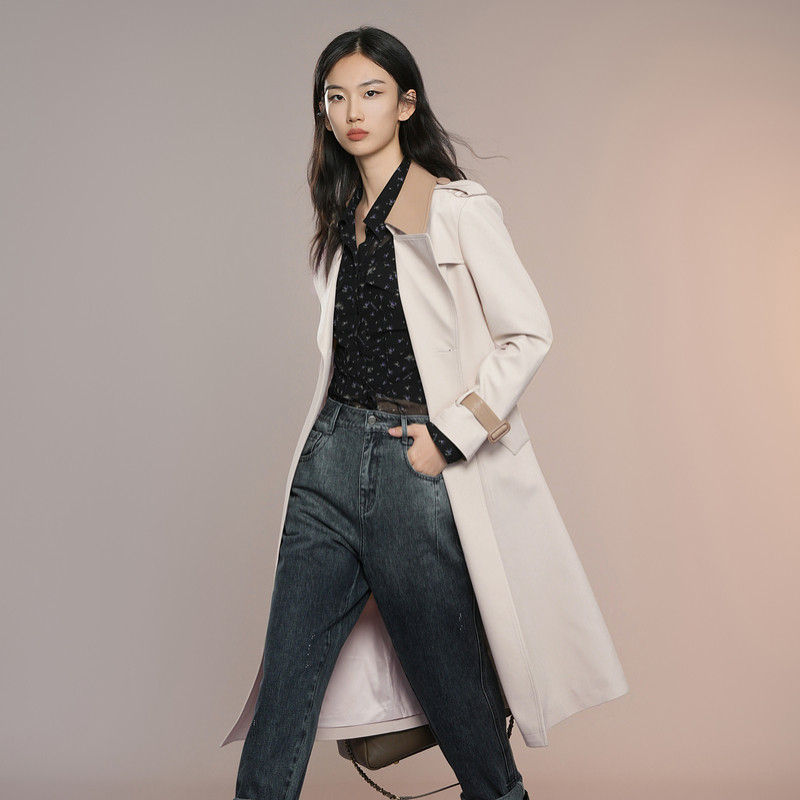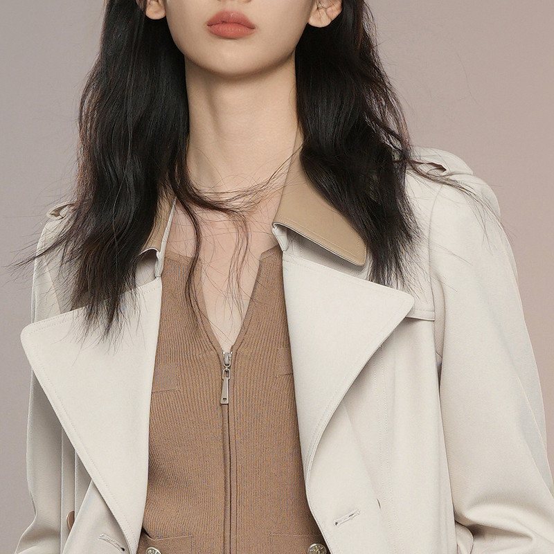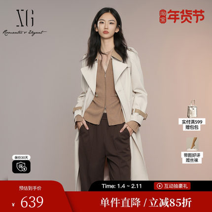 XG雪歌XK308004A460浅米色中长款风衣2025秋季新款长袖翻领外套女
