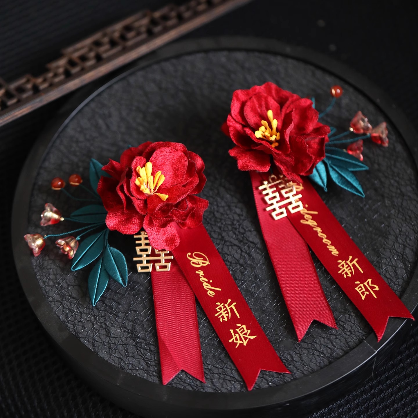 原创2025新款高级感红色山茶花古风旗袍胸花中式婚礼新娘襟花配饰