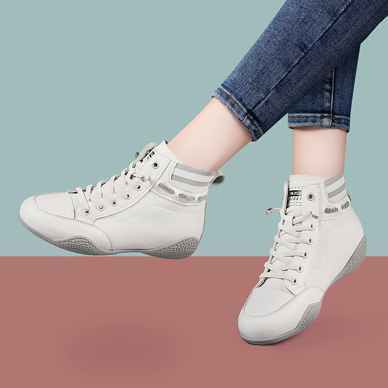 【官网】真皮高帮软底女士小白鞋