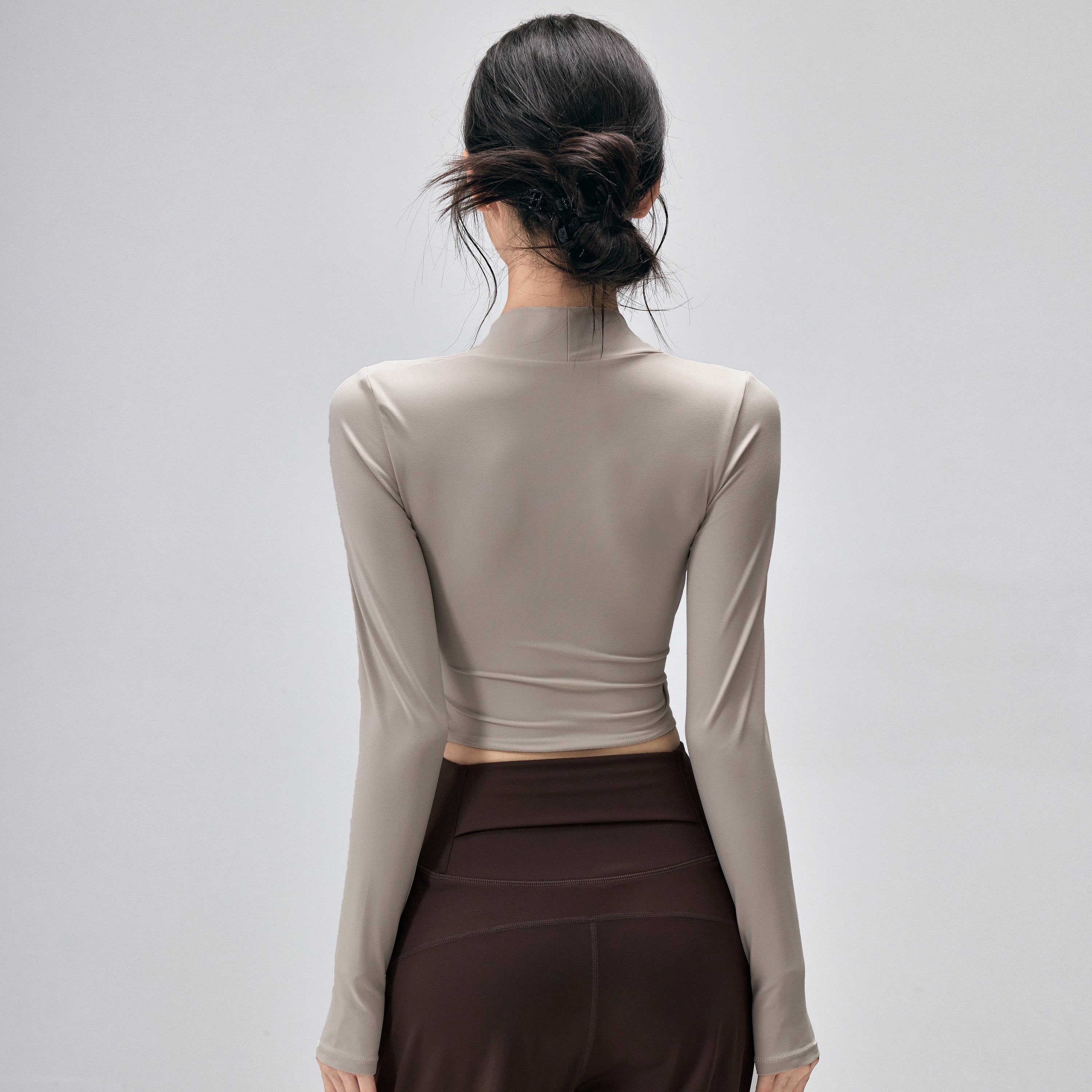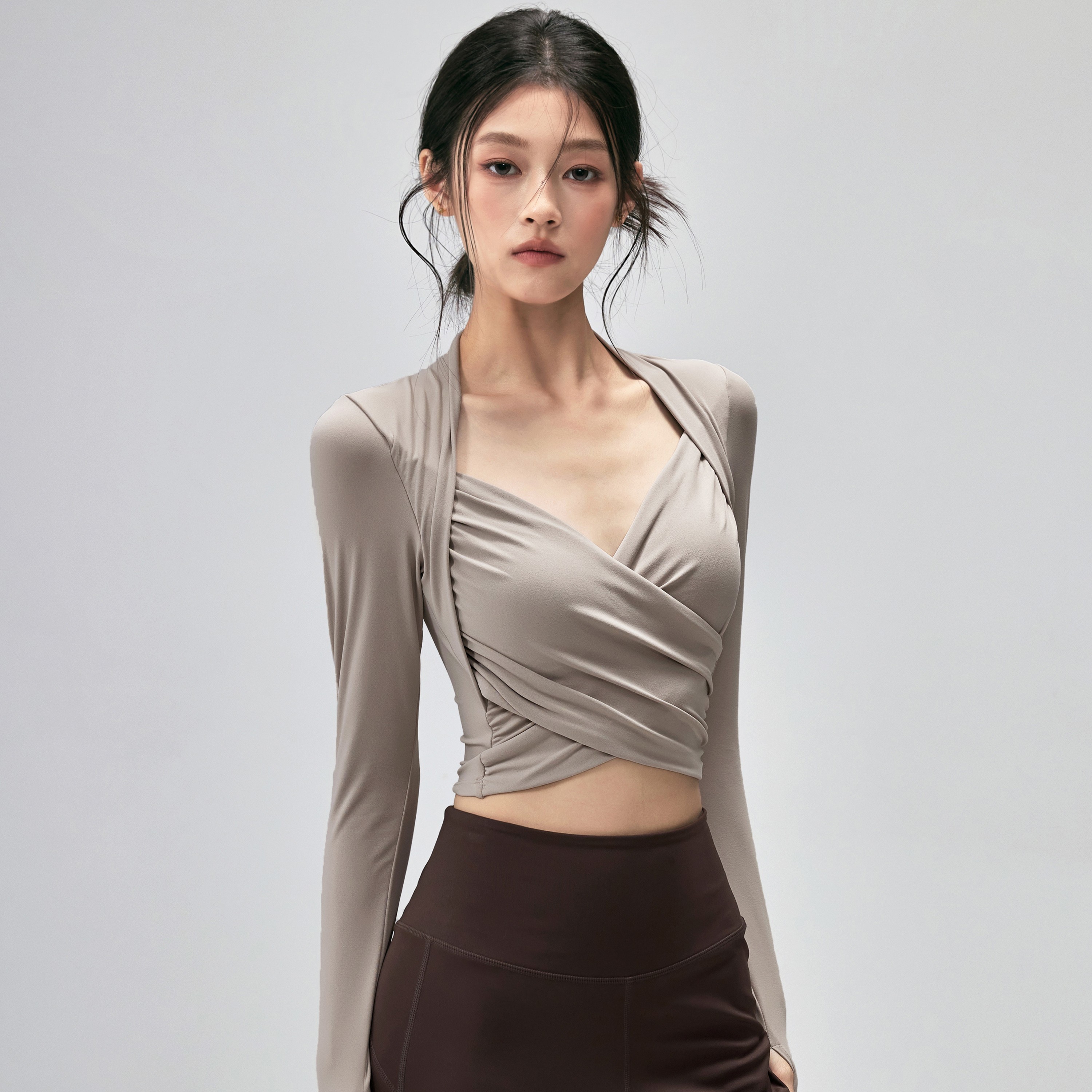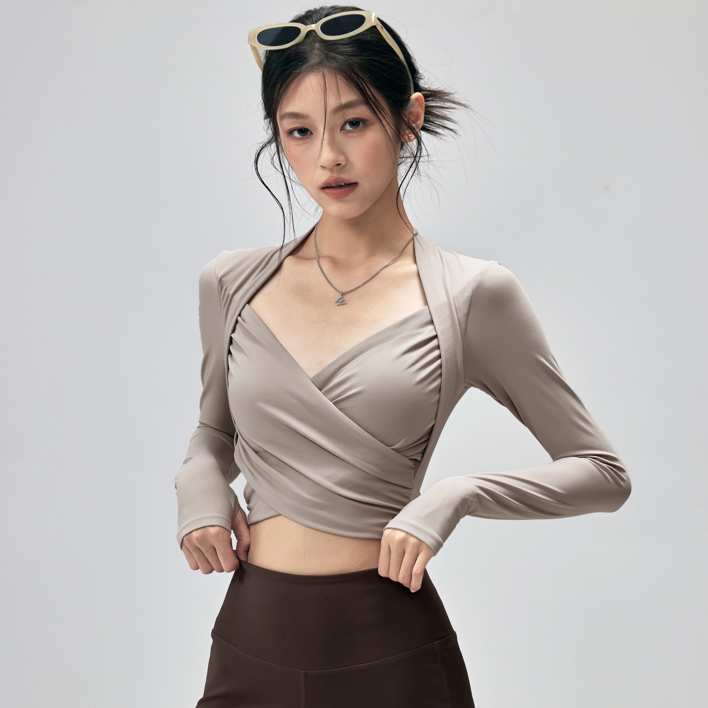 秋冬新款瑜伽服长袖女带胸垫性感运动上衣显瘦外穿普拉提训练T恤
