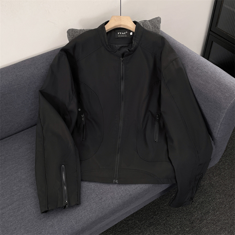 纯色美式解构拼接棒球服防水夹克男女立领休闲舒适宽松飞行服外套