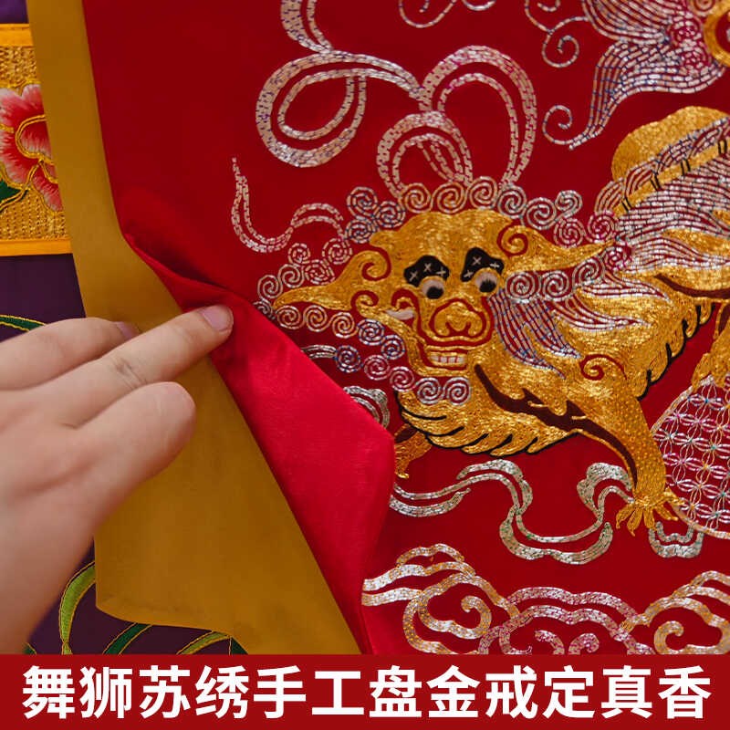 苏绣手工刺绣真香香盘幡托盘幡香盘围金线盘金舞狮狮子戒定真香