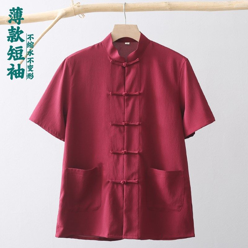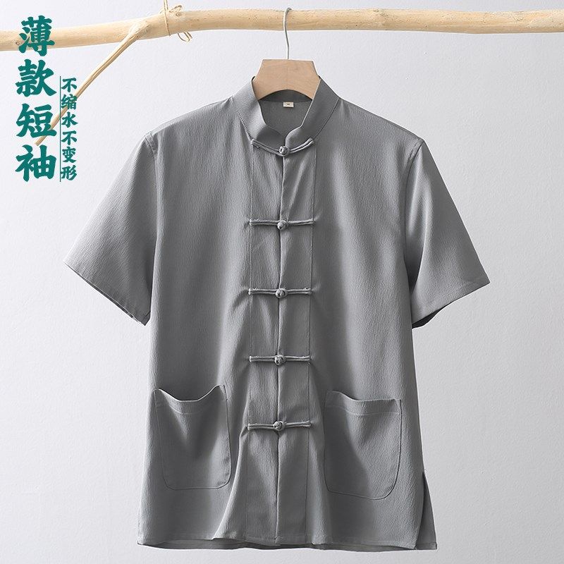 夏季唐装男薄款短袖套装中老年中国风中式复古风男装汉服半袖衬衫
