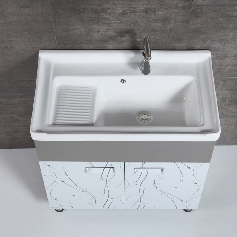 阳台不锈钢洗衣柜组合一体陶瓷洗衣盆洗脸池带搓衣板浴室柜洗手盆