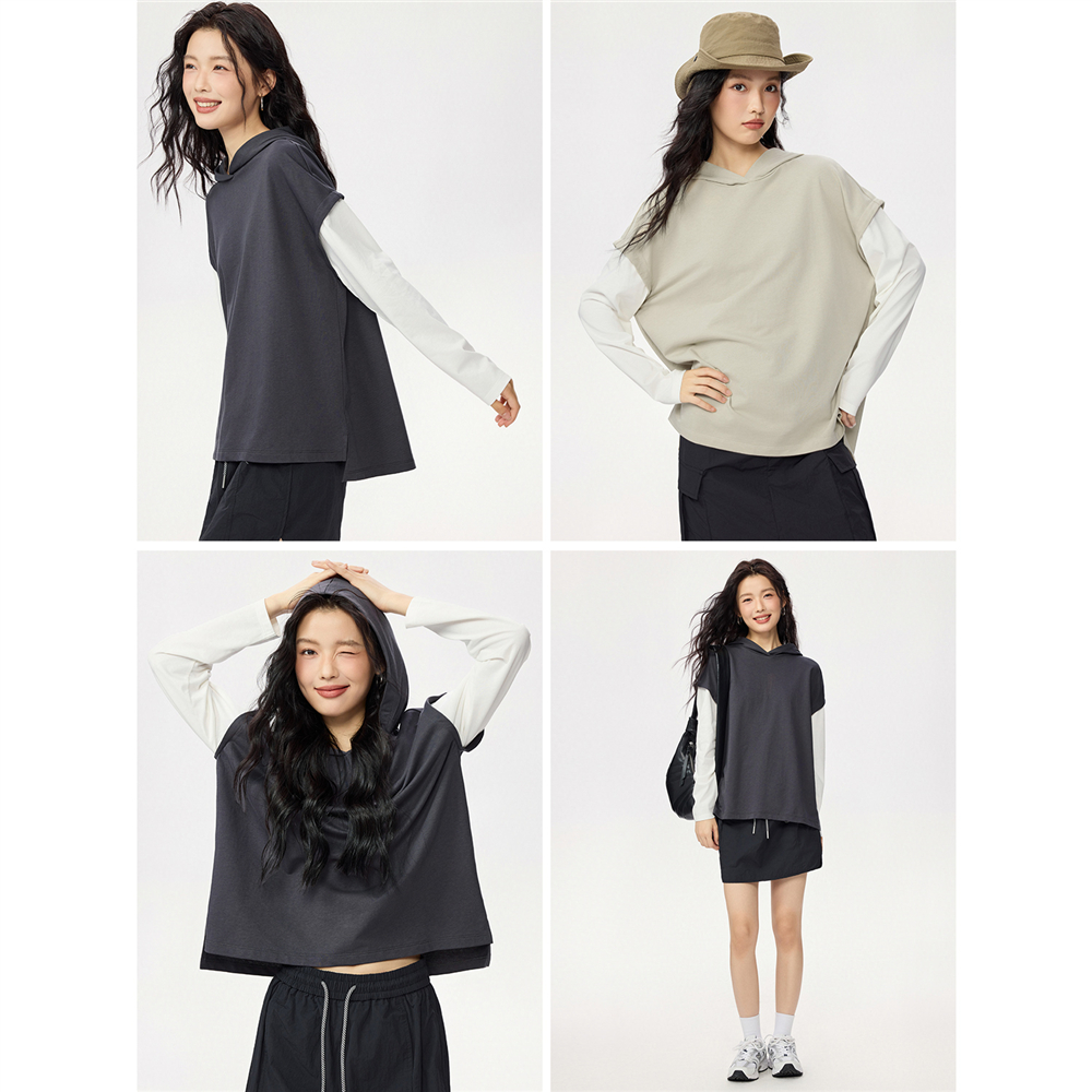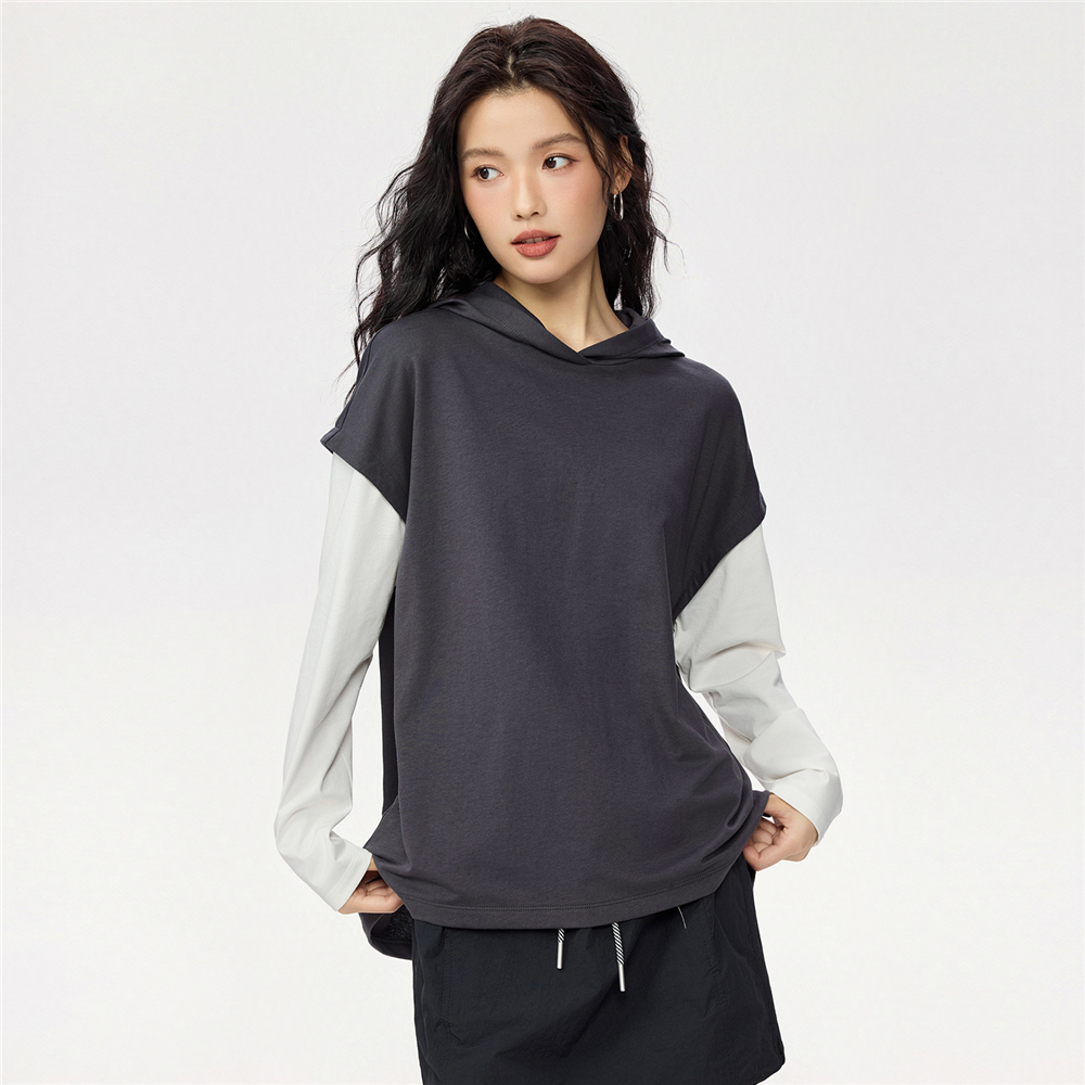 佐丹奴miu系卫衣女秋冬新款纯棉假两件宽松撞色连帽上衣13325797
