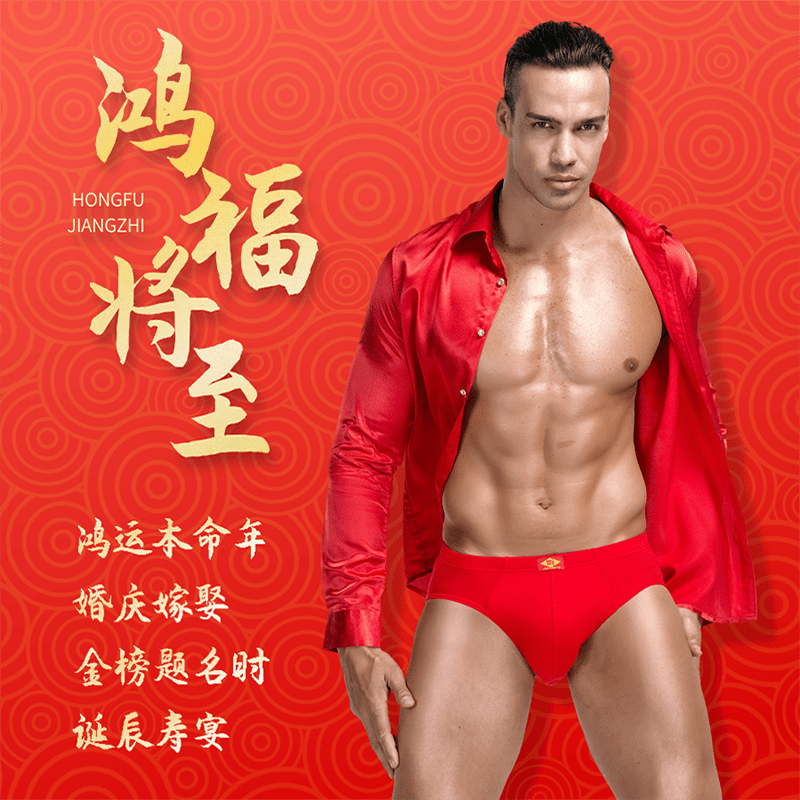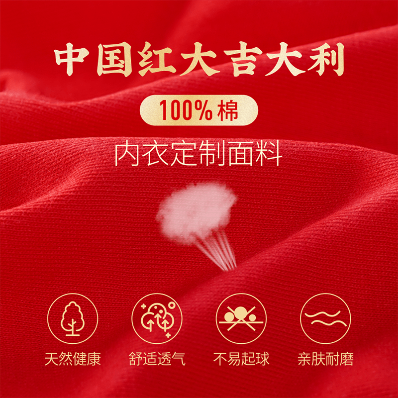 健将本命年大红色男士内裤男属蛇三角裤结婚纯棉红色全棉短裤蛇年