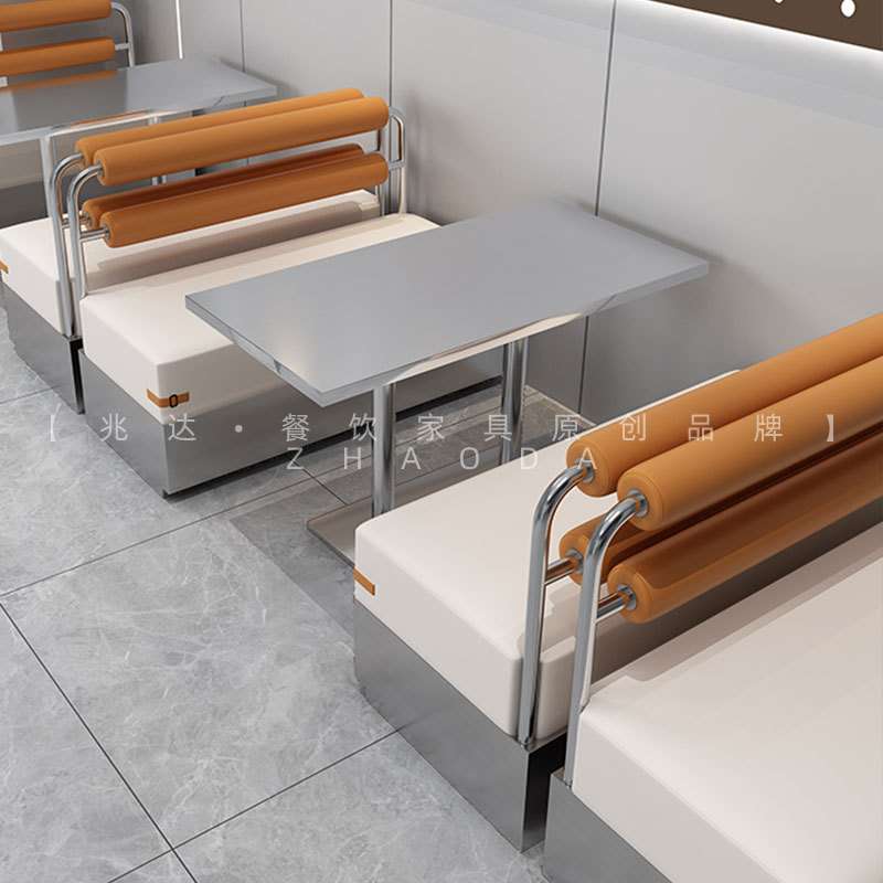 工业风网红咖啡厅意式火锅烧烤店卡座沙发主题餐厅不锈钢桌椅组合