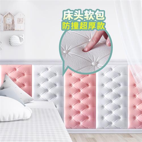 加厚自粘床头板软包防撞榻榻米3d立体壁贴卧室防撞壁贴背景墙装饰