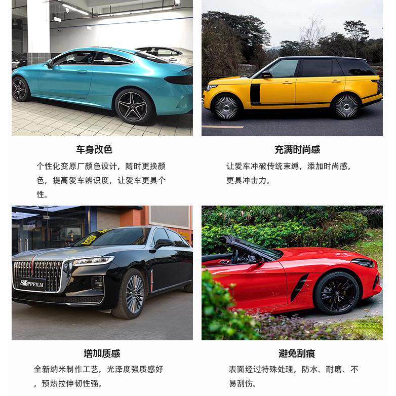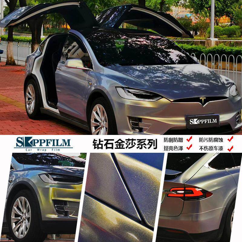 色卡汽车改色亮面哑光钻石金莎粉橙灰魅金灰魅蓝全车身改装贴膜