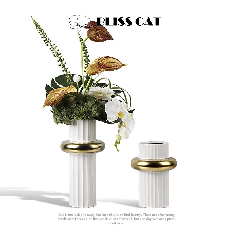 现代简约轻奢家居花瓶软装样板间酒E店电视柜客厅白色陶瓷花器摆