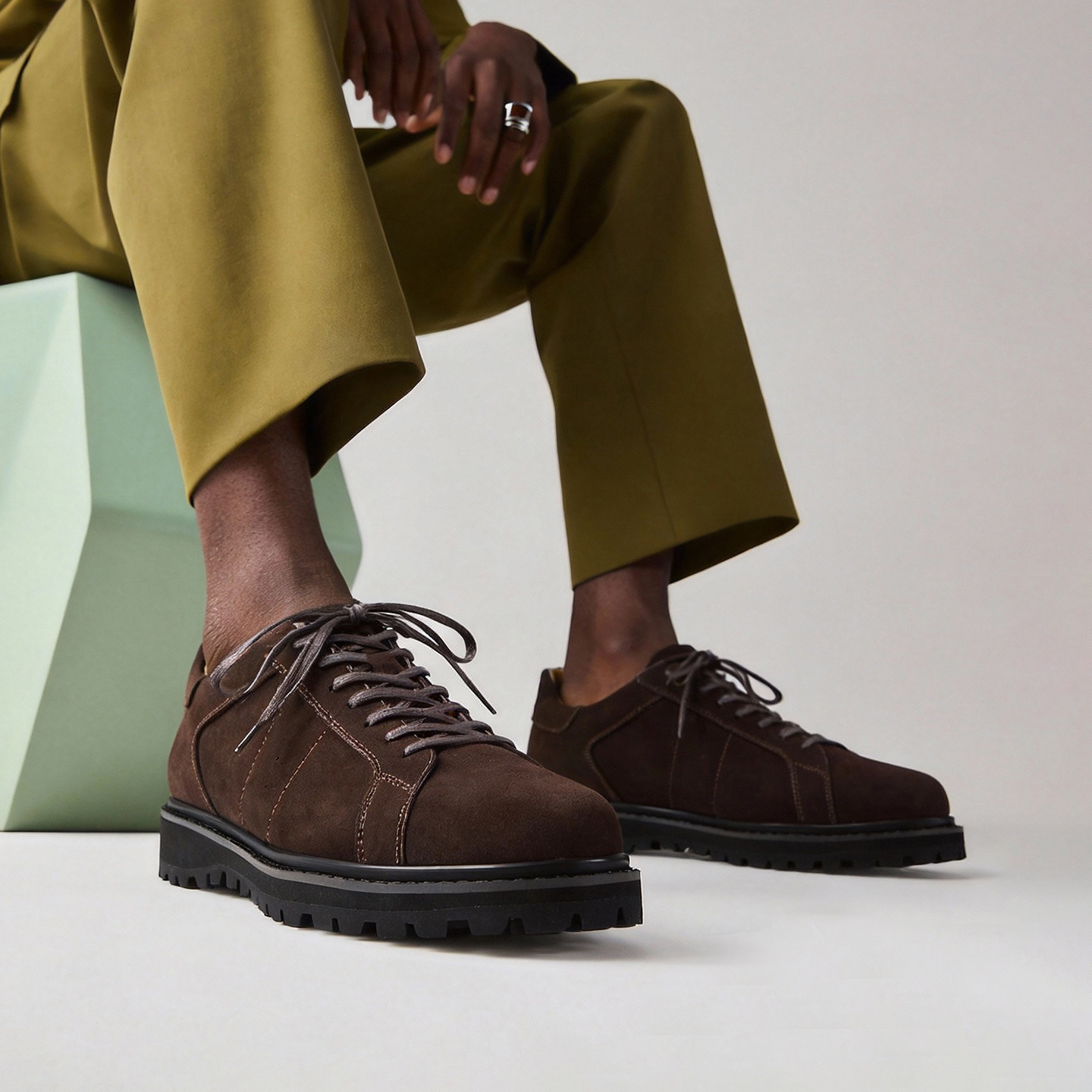 系带休闲鞋男青年复古透气户外皮鞋时尚百搭工装鞋厚底圆头品质鞋