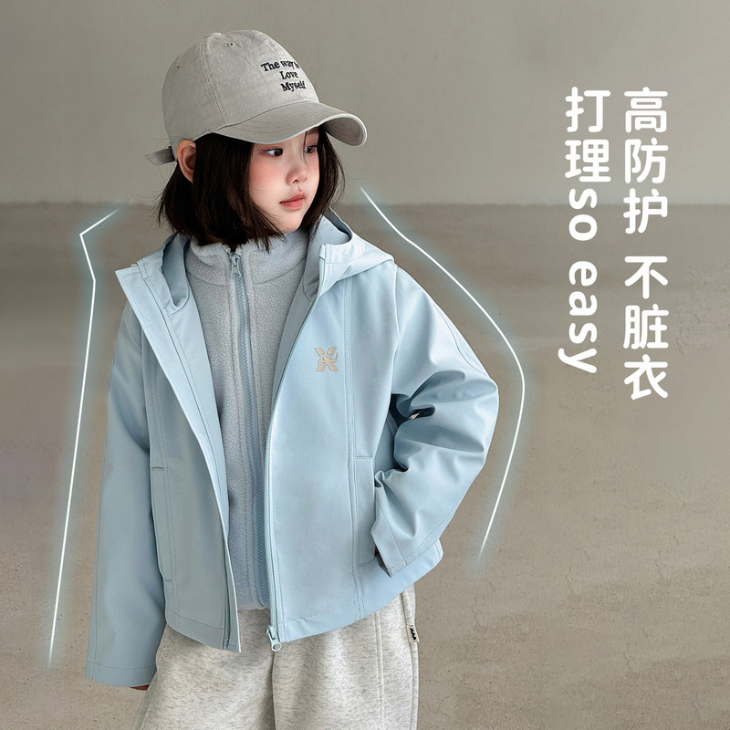 童装童装女童三防冲锋衣2025秋冬季新款儿童户外防水连帽