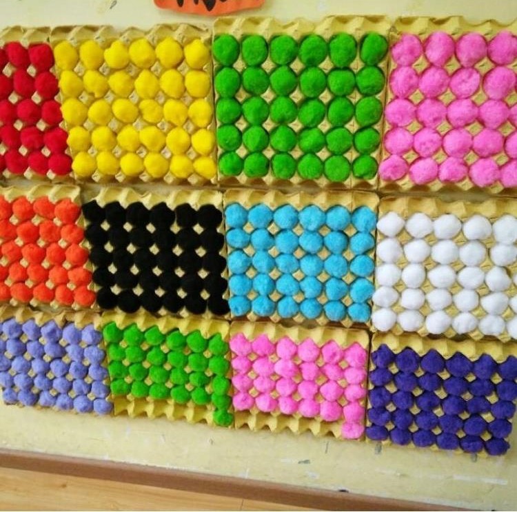 蛋托幼儿园区域互动材料5cm毛球益智区墙面游戏美工区角投放材料