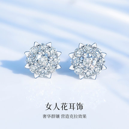 喜钻 女人花 钻石耳钉女璀璨闪耀金耳环50分18K金耳钉耳饰