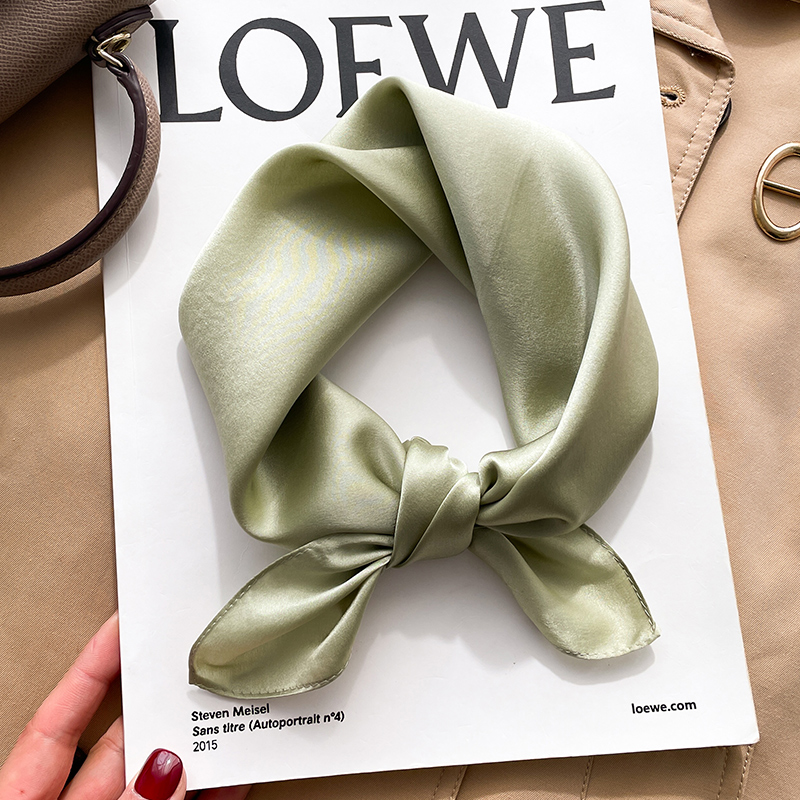 纯绿色小方巾丝巾女春秋冬季职业装饰护颈饰围脖子真丝桑蚕丝围巾