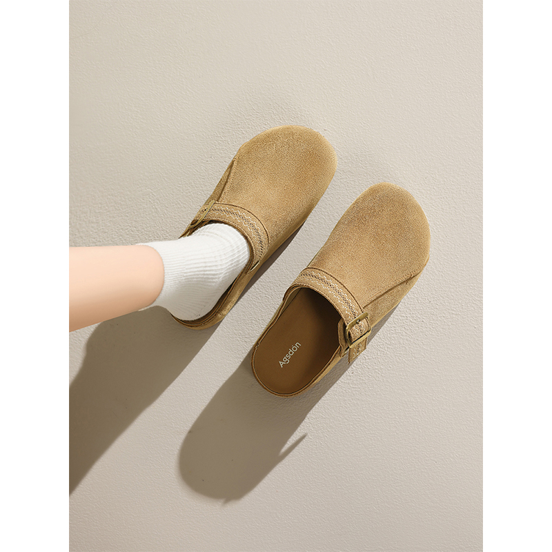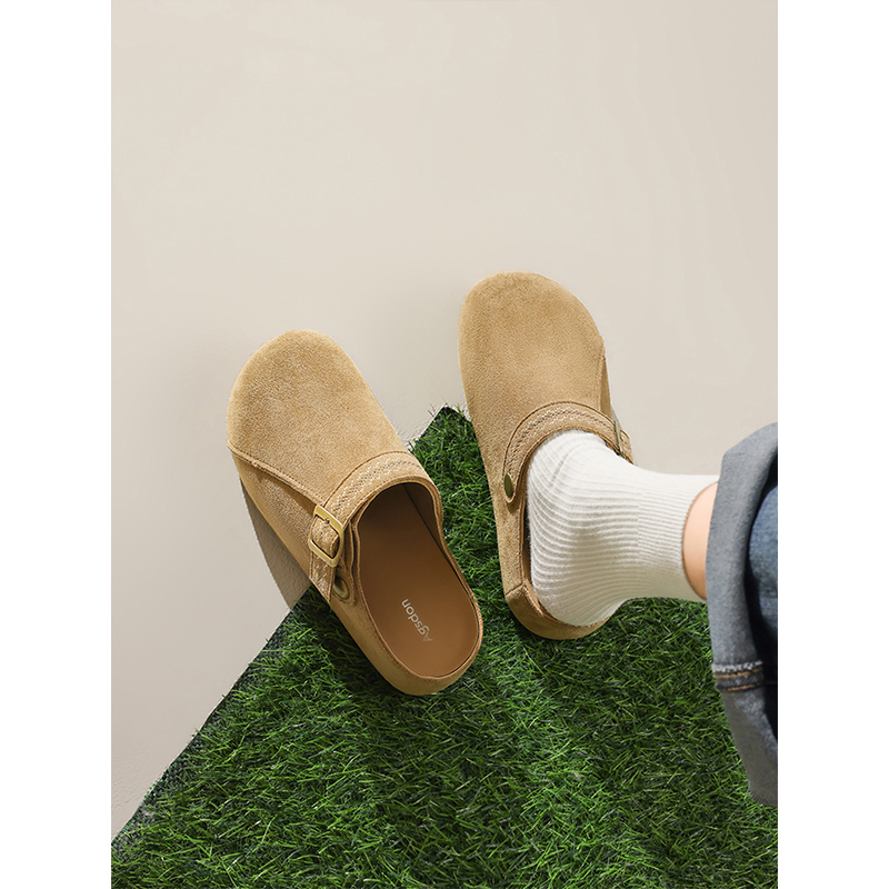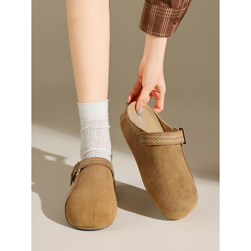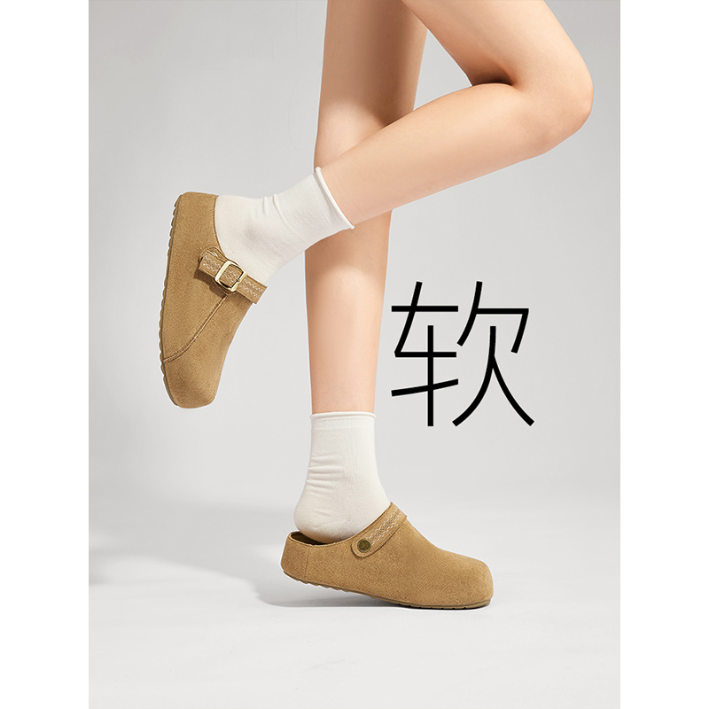 香港真皮勃肯鞋女2025新款秋季一脚蹬厚底拖鞋懒人超火包头半拖鞋