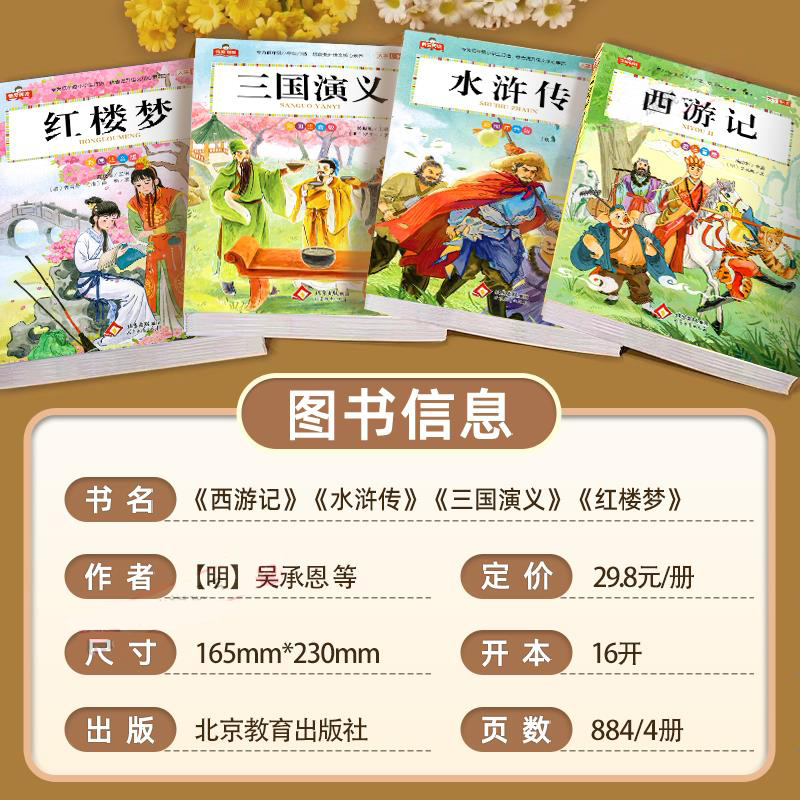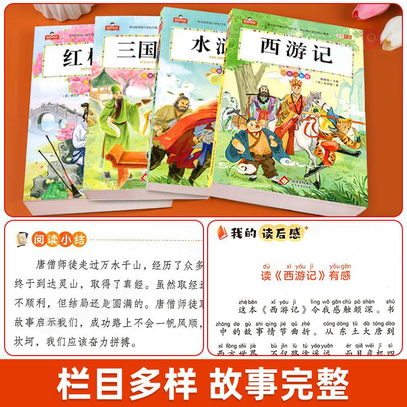四大名著小学生版全套注音版西游记三国演义水浒传红楼梦原著正版思维导图青少年阅读课外书籍一二年级必读漫画故事儿童绘本物X