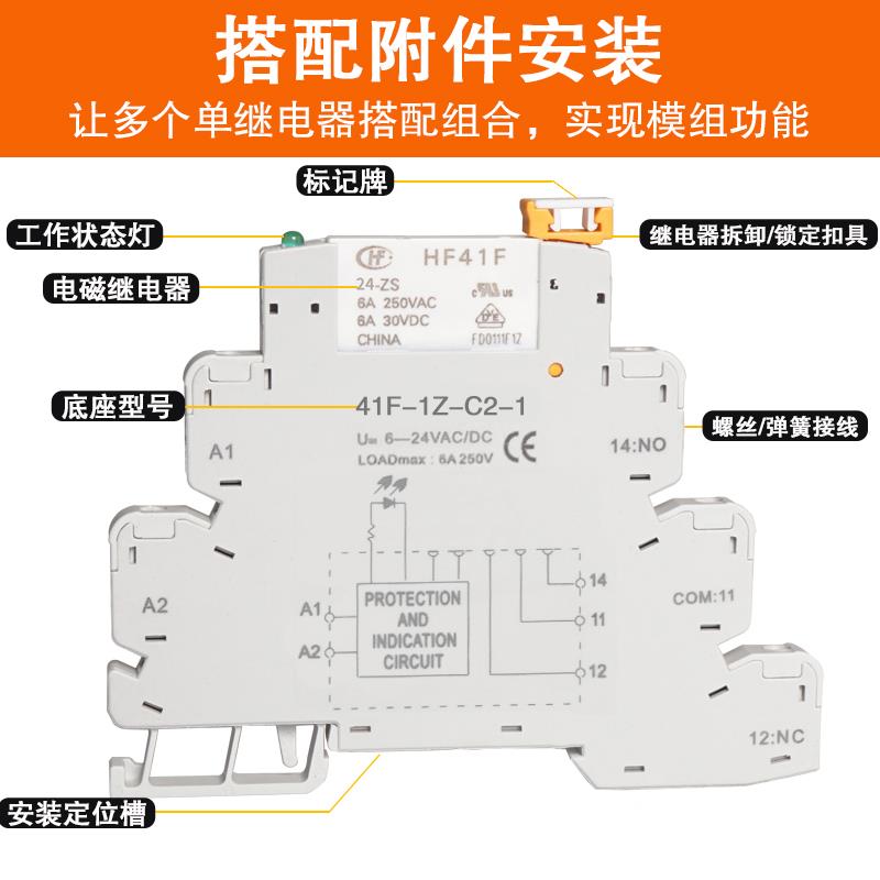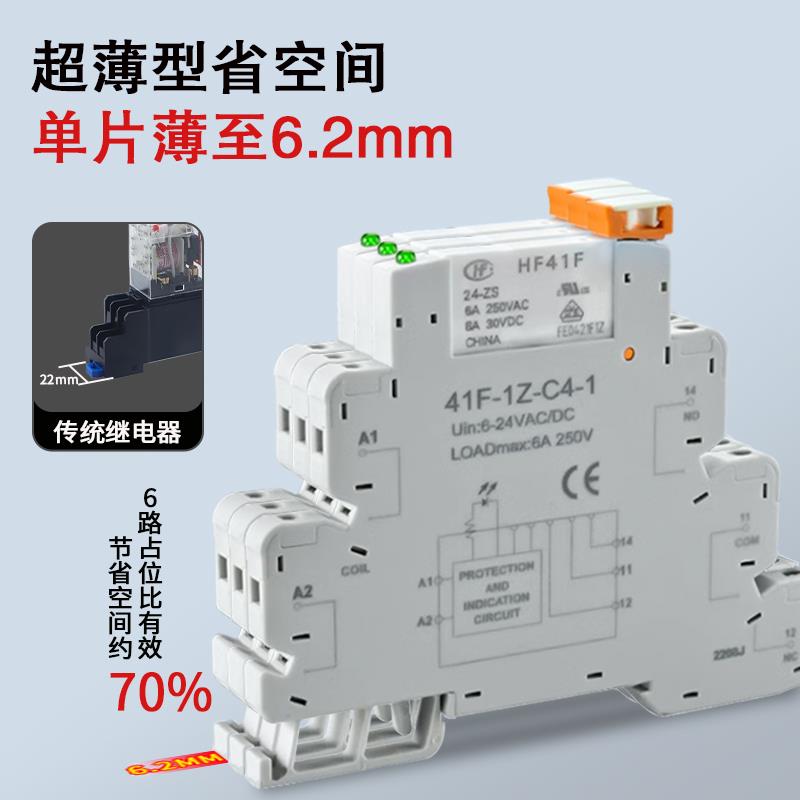 宏发41F-1Z-C2-1薄片式继电器底座HF41F-024-ZS超薄型继电器DC24V