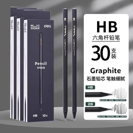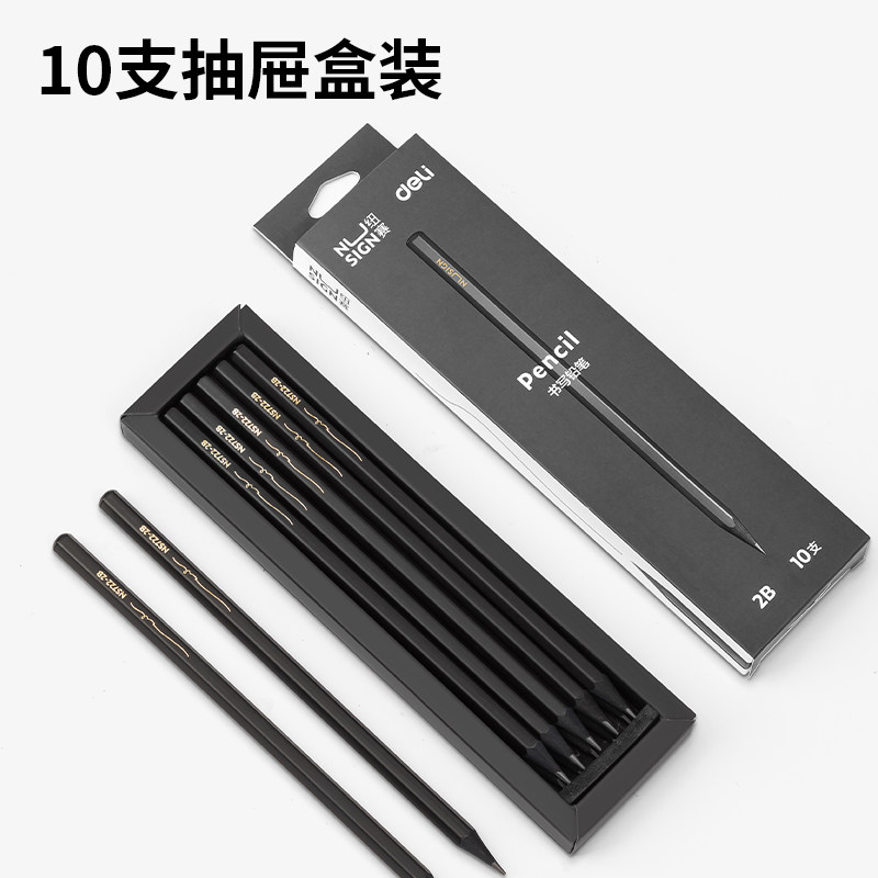 【10支装】得力纽赛黑木黑色铅笔hb小学生专用一二年级学生铅笔2b儿童幼儿园学习文具用品套装考试笔