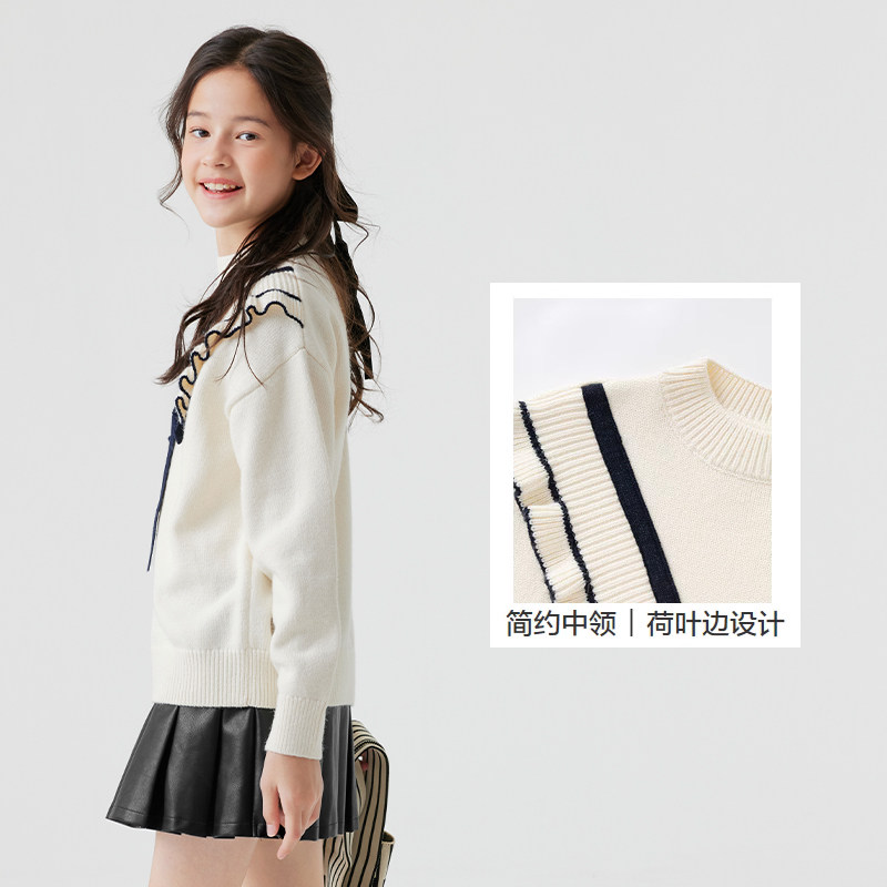 巴拉巴拉女童套头毛衣中大童白色针织衫儿童圆领毛衫秋冬新款童装