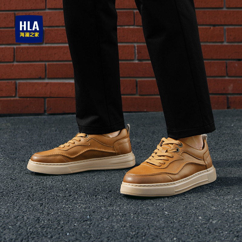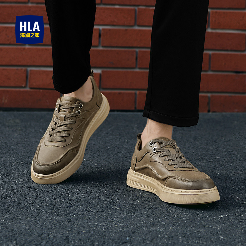 HLA/海澜之家男鞋夏季新款休闲皮鞋男士低帮透气复古耐磨工装板鞋