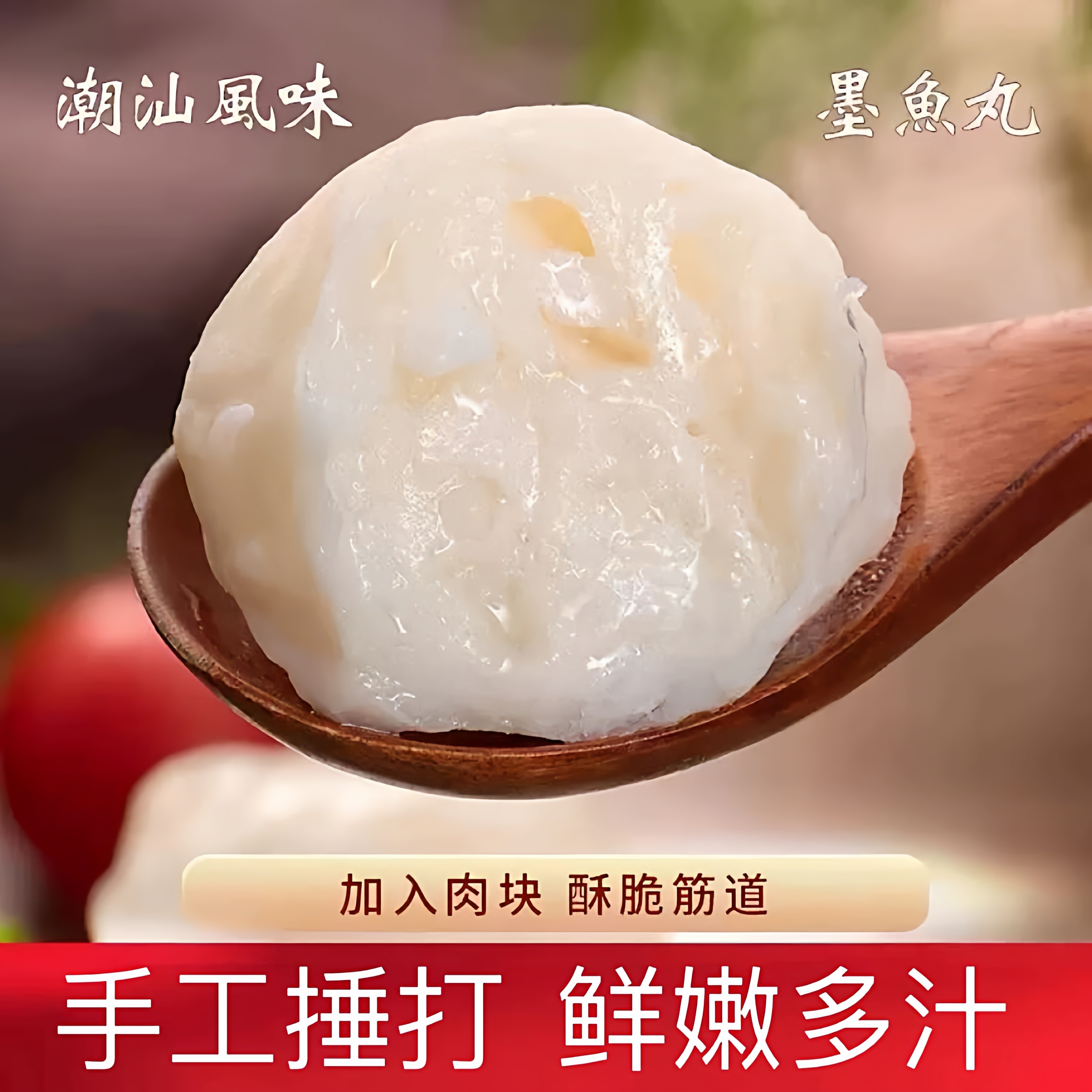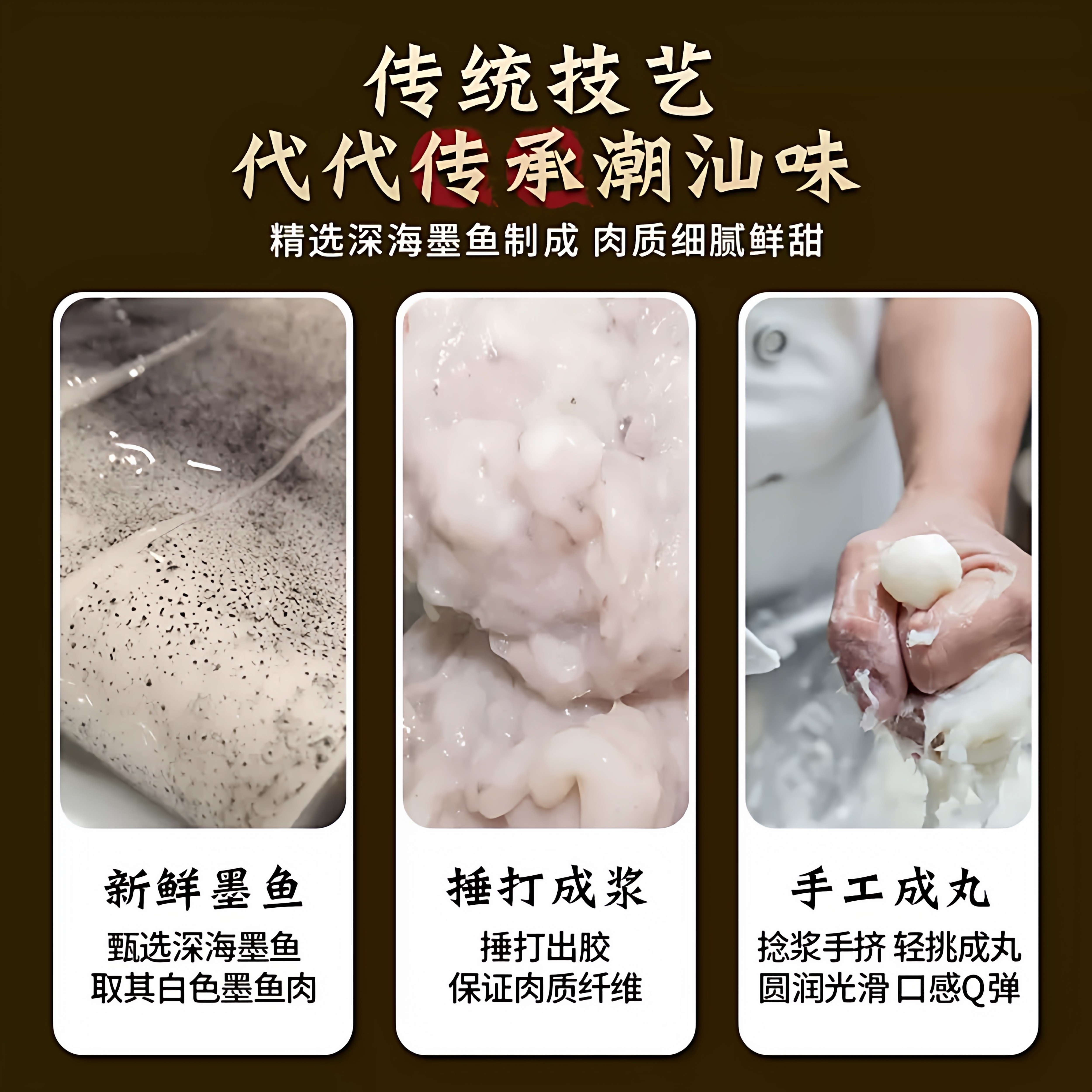 潮汕手工墨鱼丸花枝丸墨斗丸正宗手打鱼丸1500g海鲜丸子火锅食材