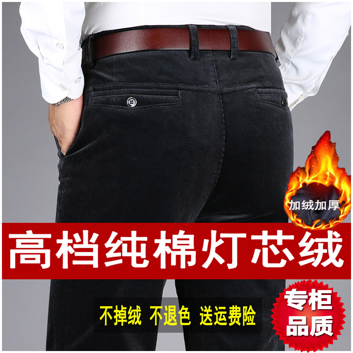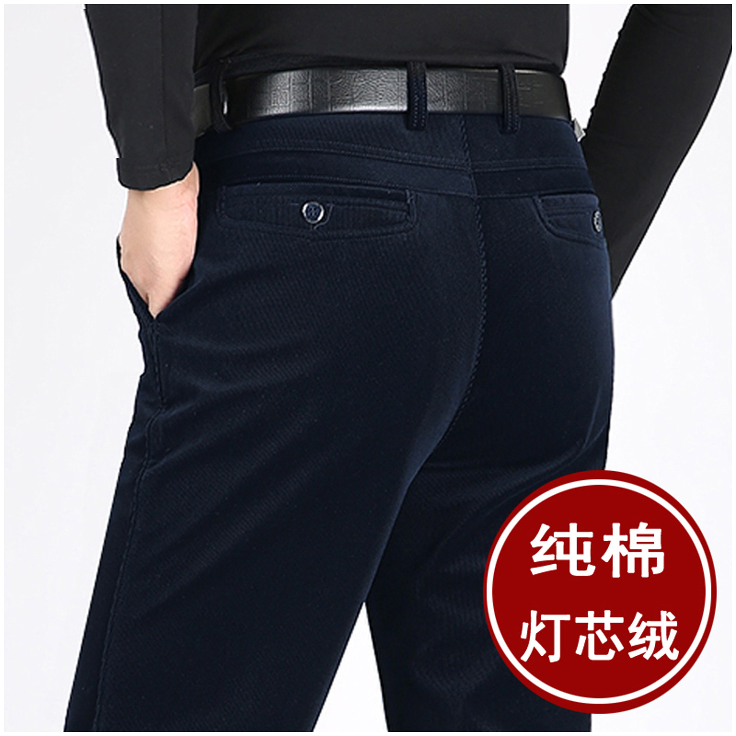 皮尔卡丹纯棉灯芯绒休闲裤男高腰宽松爸爸条绒裤冬季加绒中年男裤