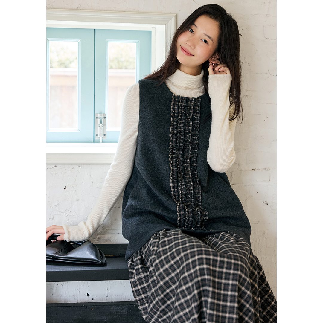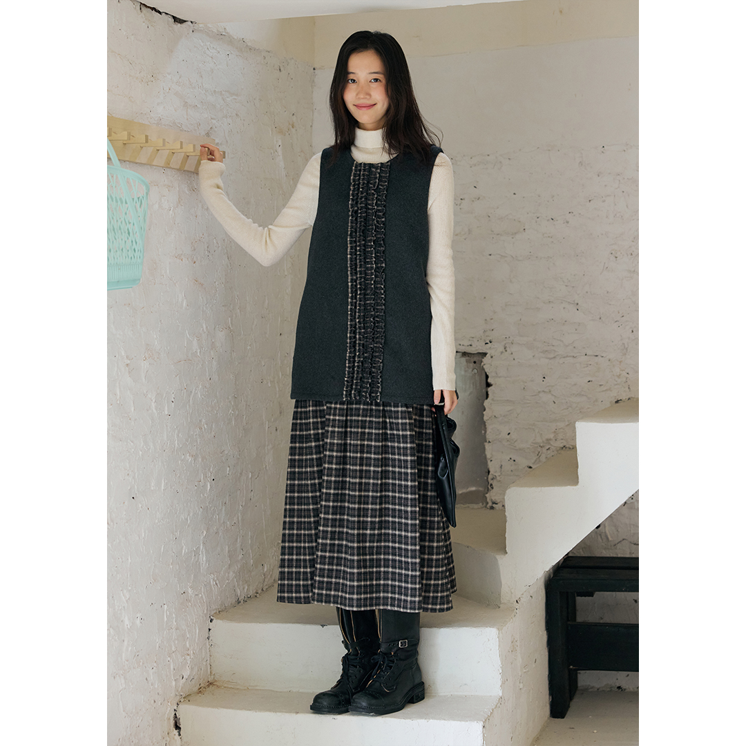 BLUEerror 假两件圆领毛呢背心连衣裙女慵懒羊毛保暖无袖长裙冬季