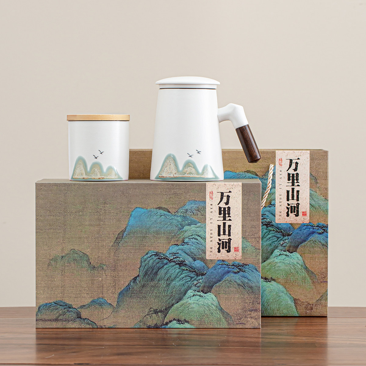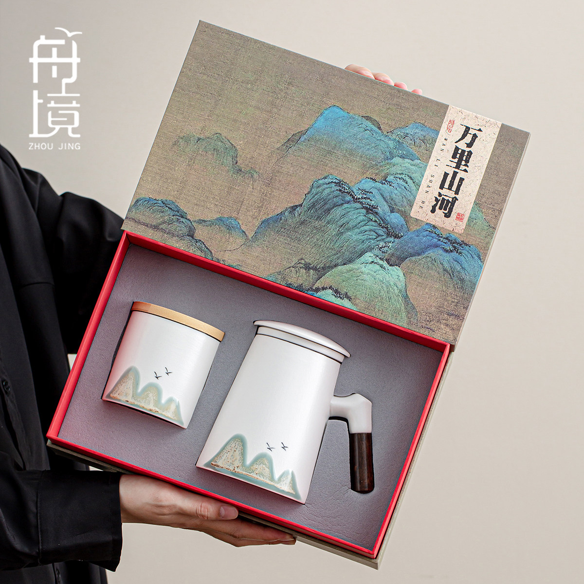 舟境高档办公室茶杯个人专用茶水分离喝茶陶瓷茶叶罐伴手礼物套装