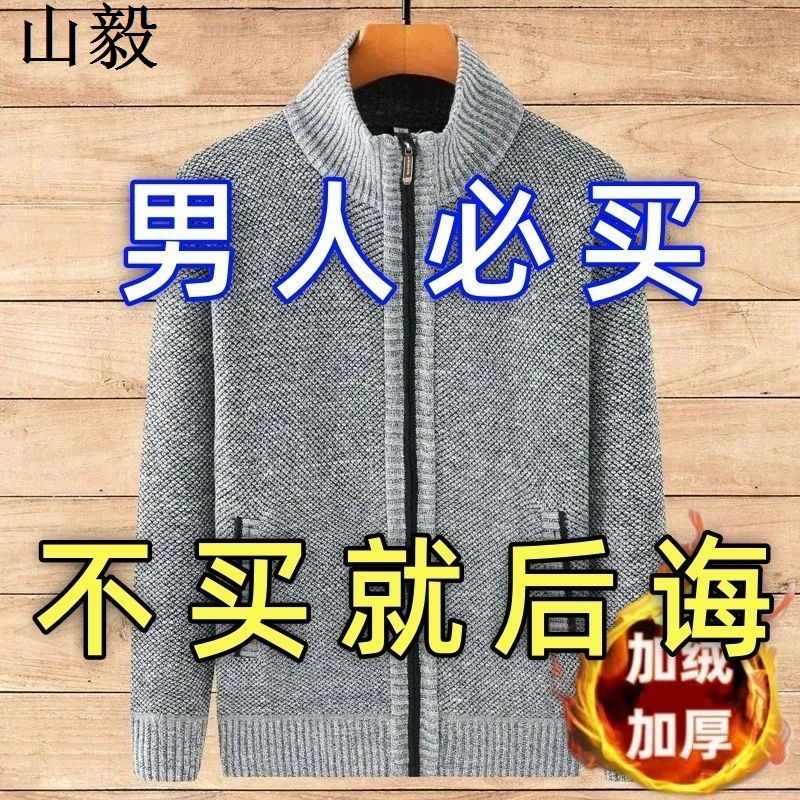爸爸装秋冬半高领拉链保暖毛衣加绒加厚中老年男士针织衫打底上衣