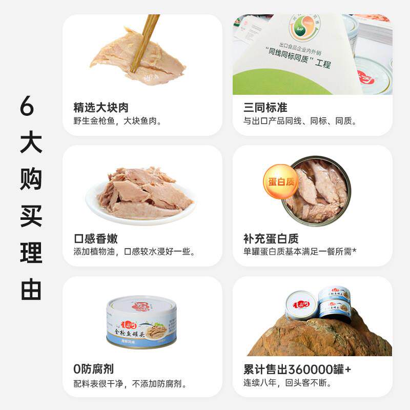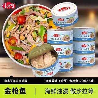 油浸金枪鱼罐头低脂水浸即食健身代餐吞拿鱼寿司170gx8罐