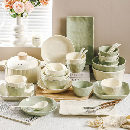 奶油风碗碟套装家用乔迁新婚礼物碗筷盘子组合高级感碗盘餐具套装