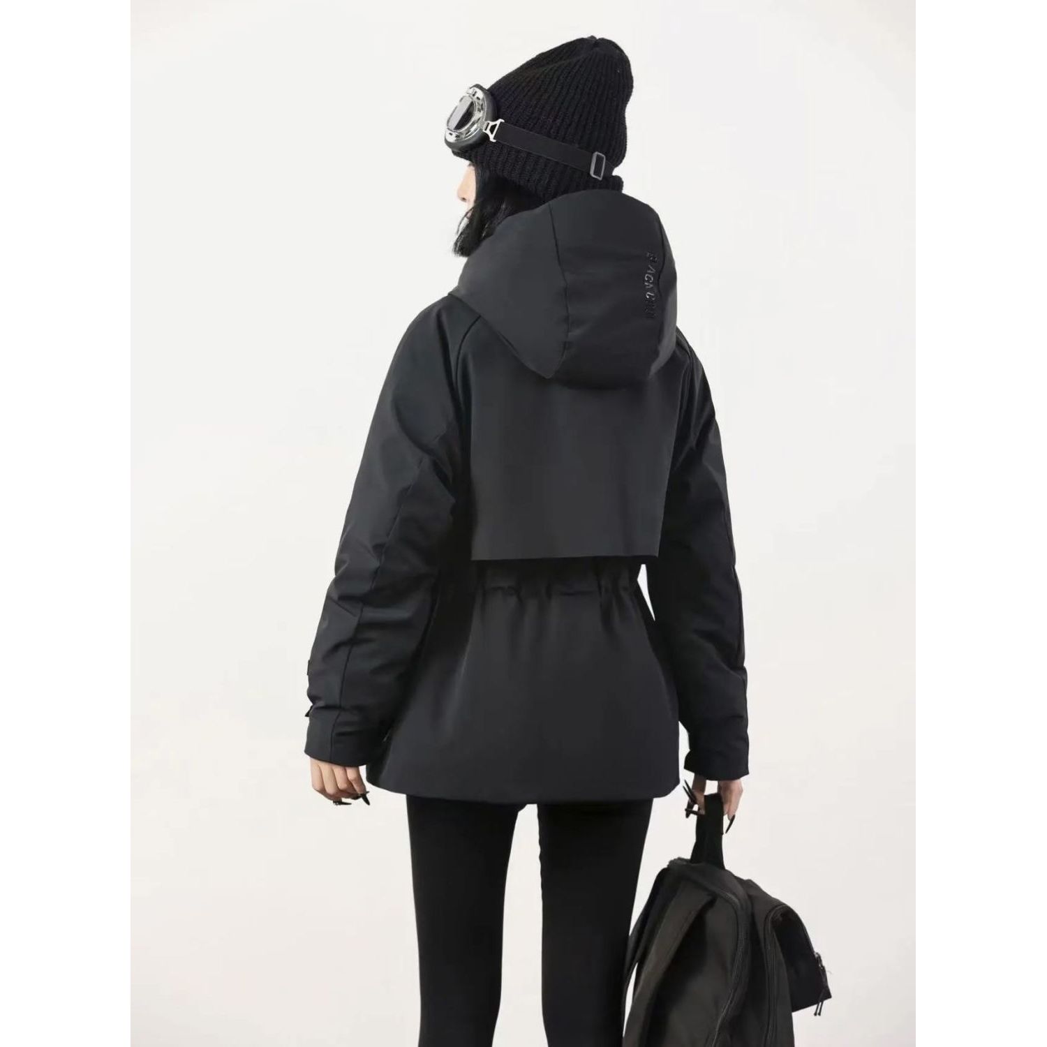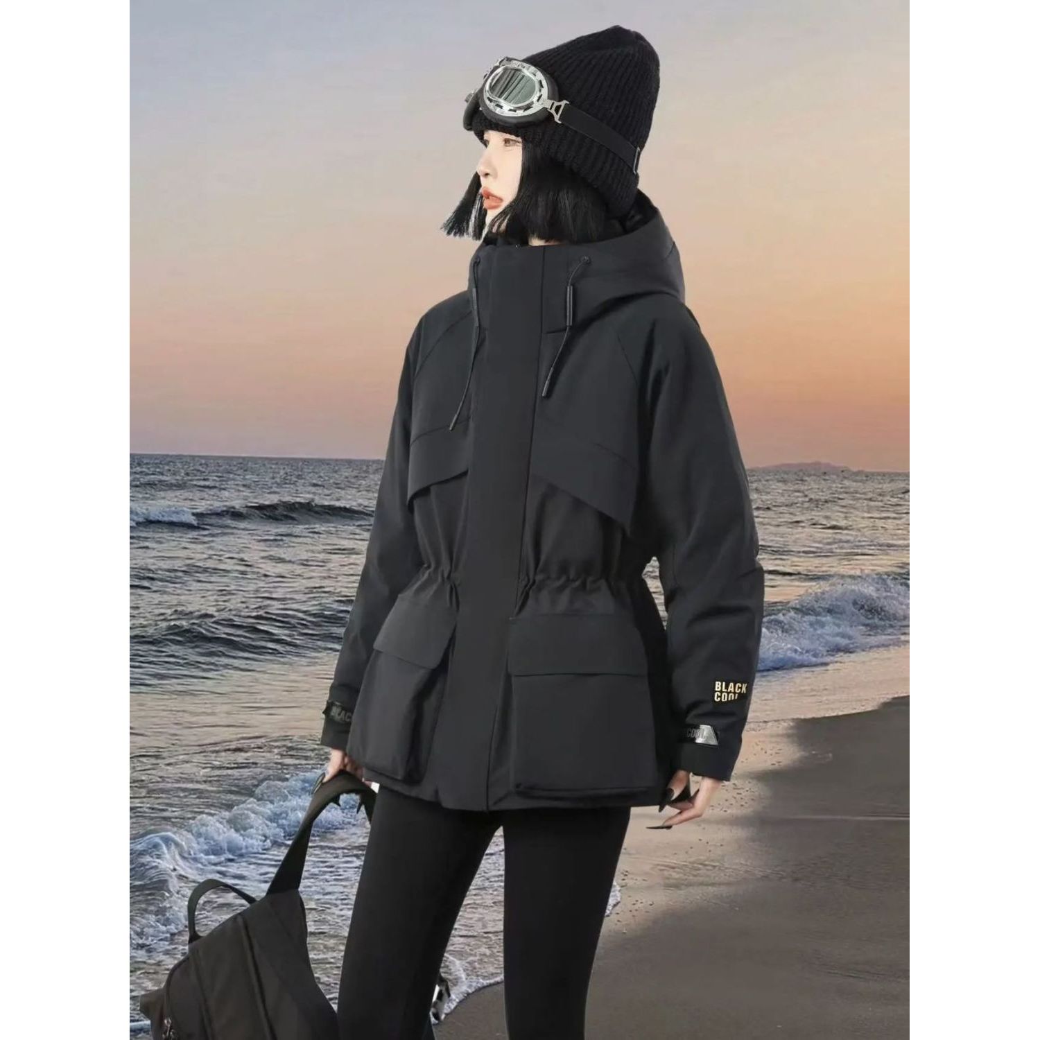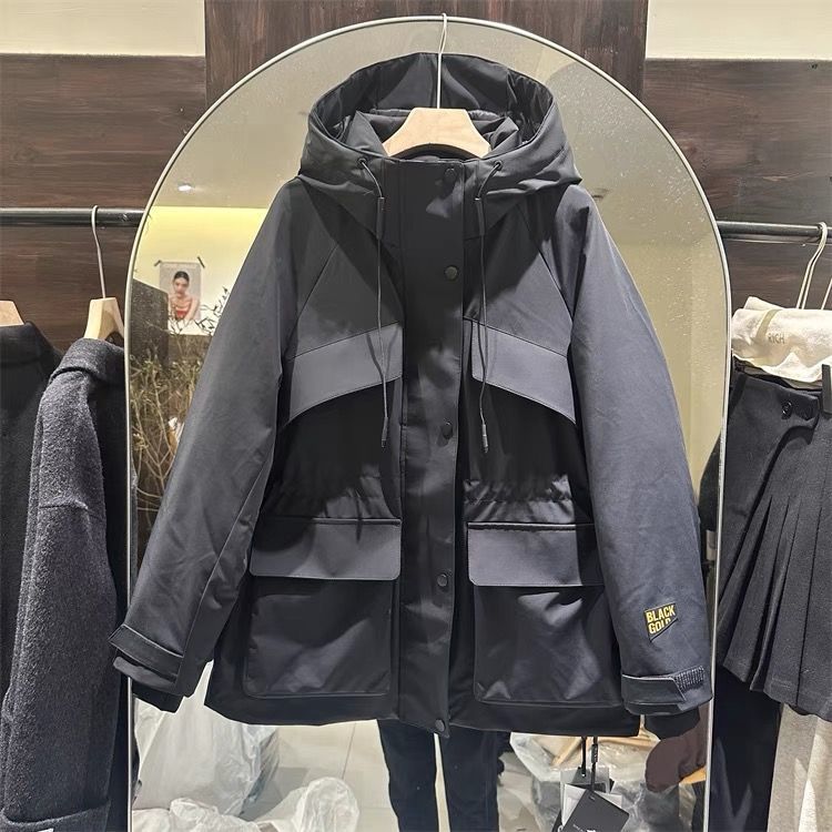 欧货2025冬季加厚冲锋衣派克服外套女收腰连帽中长款黑金棉服