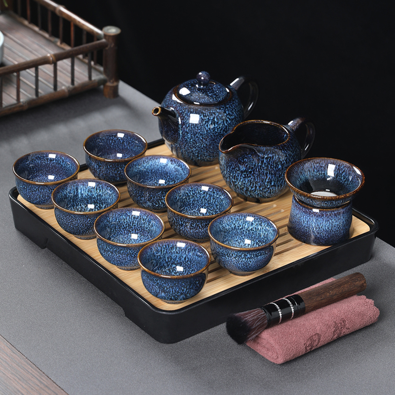 窑变茶具天目釉茶具套装陶瓷蓝盏泡茶壶盖碗整套茶具套装2025新款