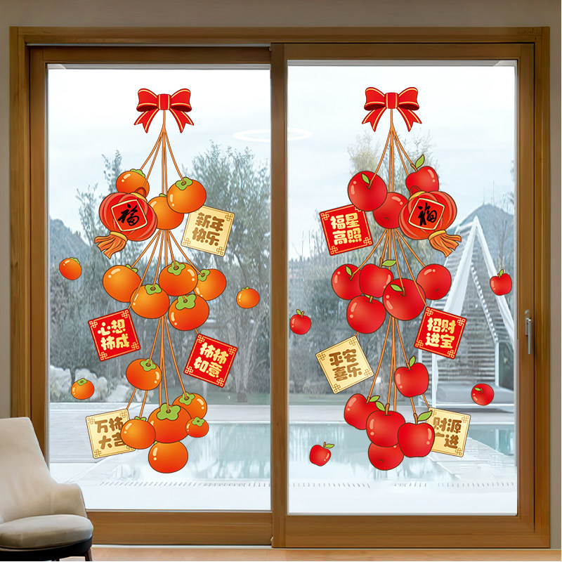 新年马年窗花贴元旦玻璃门贴跨年装饰品过年福字剪纸春节窗户贴纸