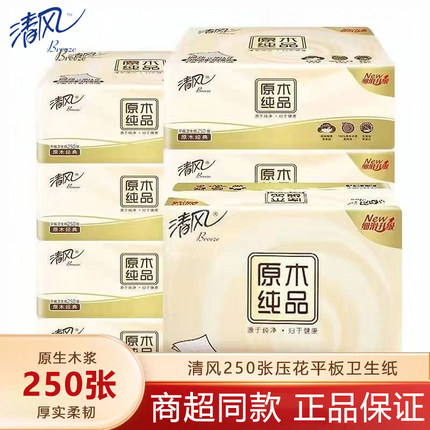 清风卫生纸厕纸250张3连包家用平板压花厕所手纸草纸方块纸刀切纸
