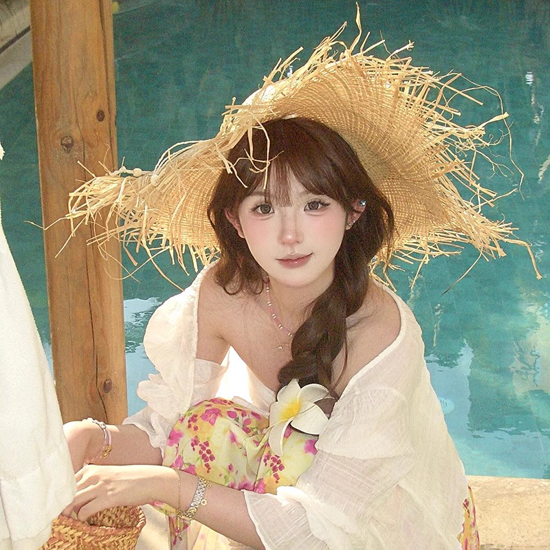 法式拉菲草帽女夏季出游海边沙滩