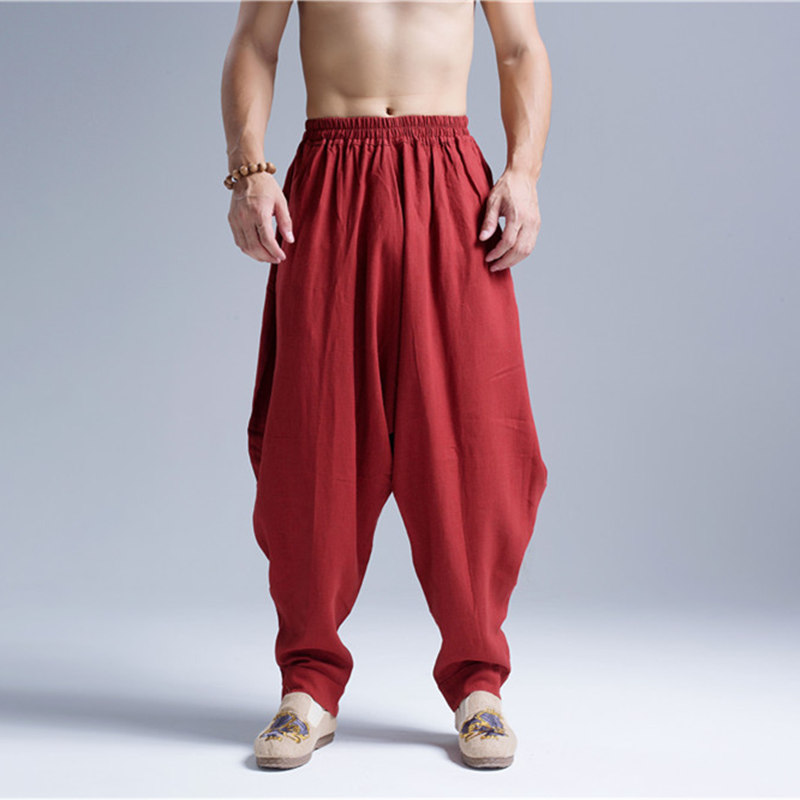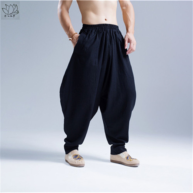 春夏季新款棉麻亚麻大裆灯笼裤男士休闲吊裆大码潮宽松哈伦长裤