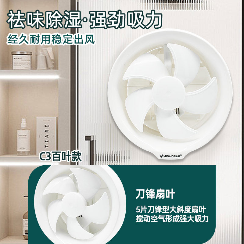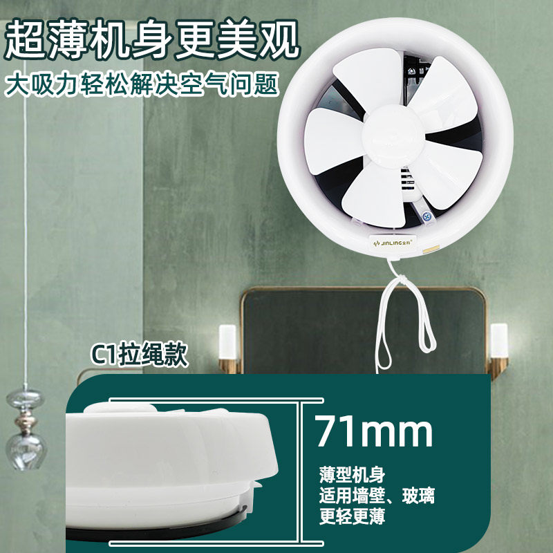 金羚圆形排气扇圆孔玻璃窗式厨房卫生间墙壁开关静音排风扇换气扇