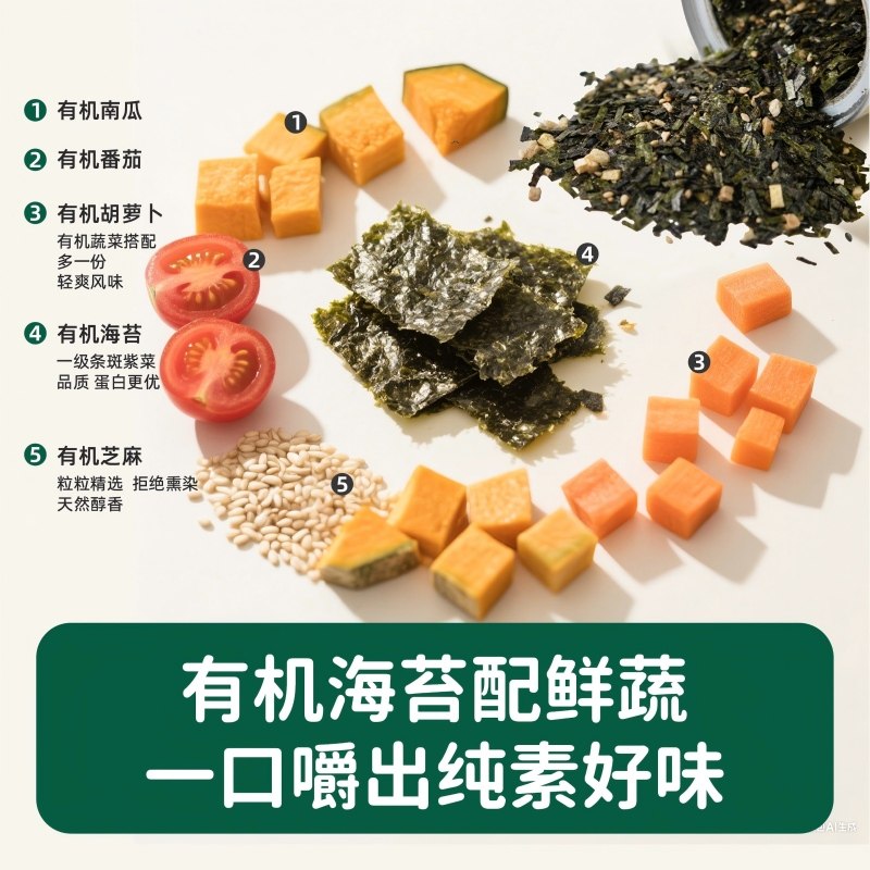 碧欧奇40g有机海苔碎紫菜罐装即食儿童零食不添加植物油呵护小肚