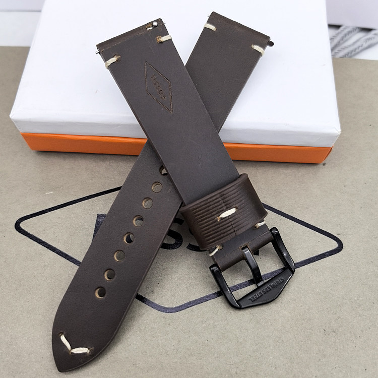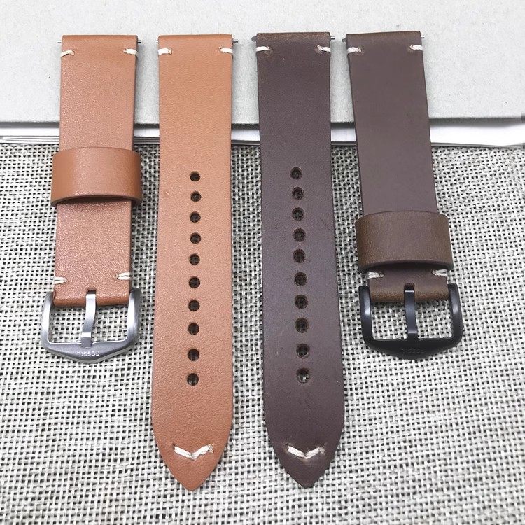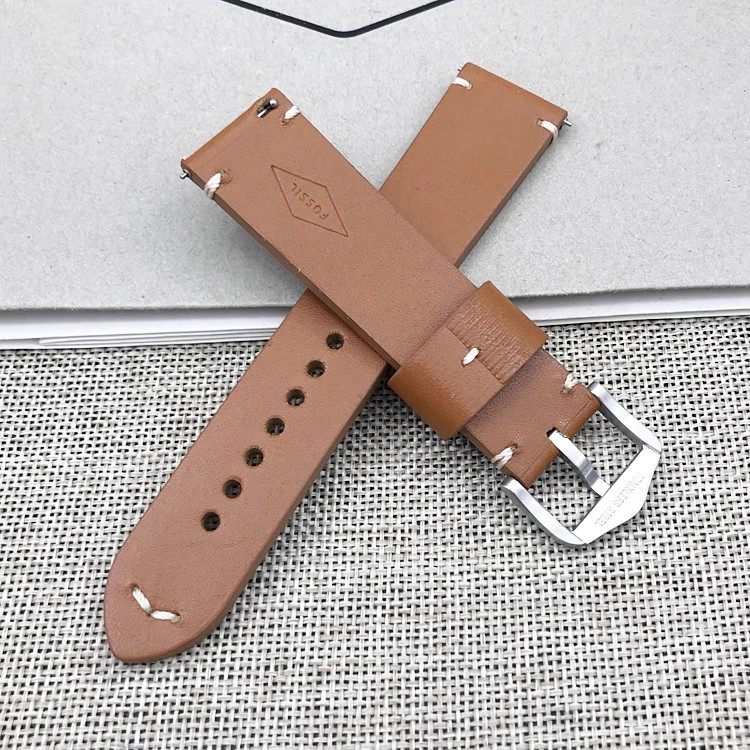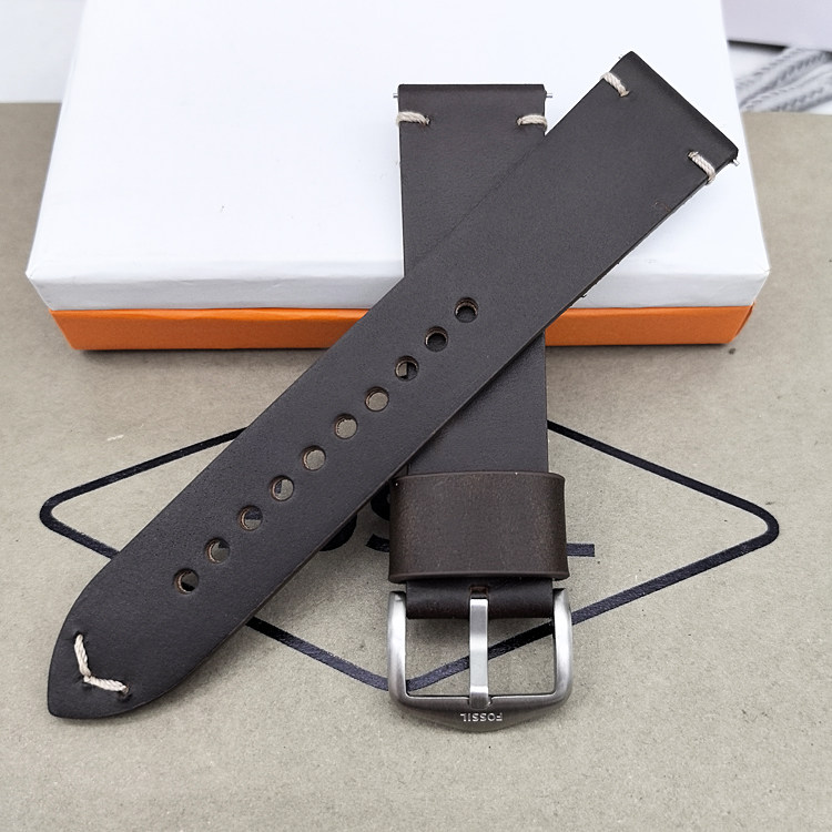 FOSSIL表带真皮针扣啡色22MM通用偏厚快拆男士手表配件