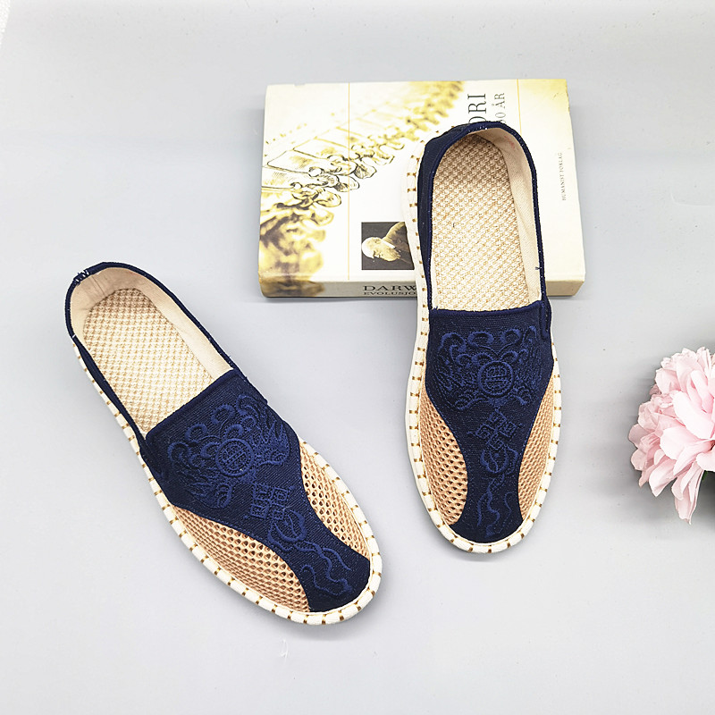 中国风布鞋夏季透气2022新款休闲手工刺绣低帮套脚亚麻凉鞋软底男