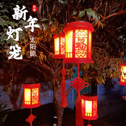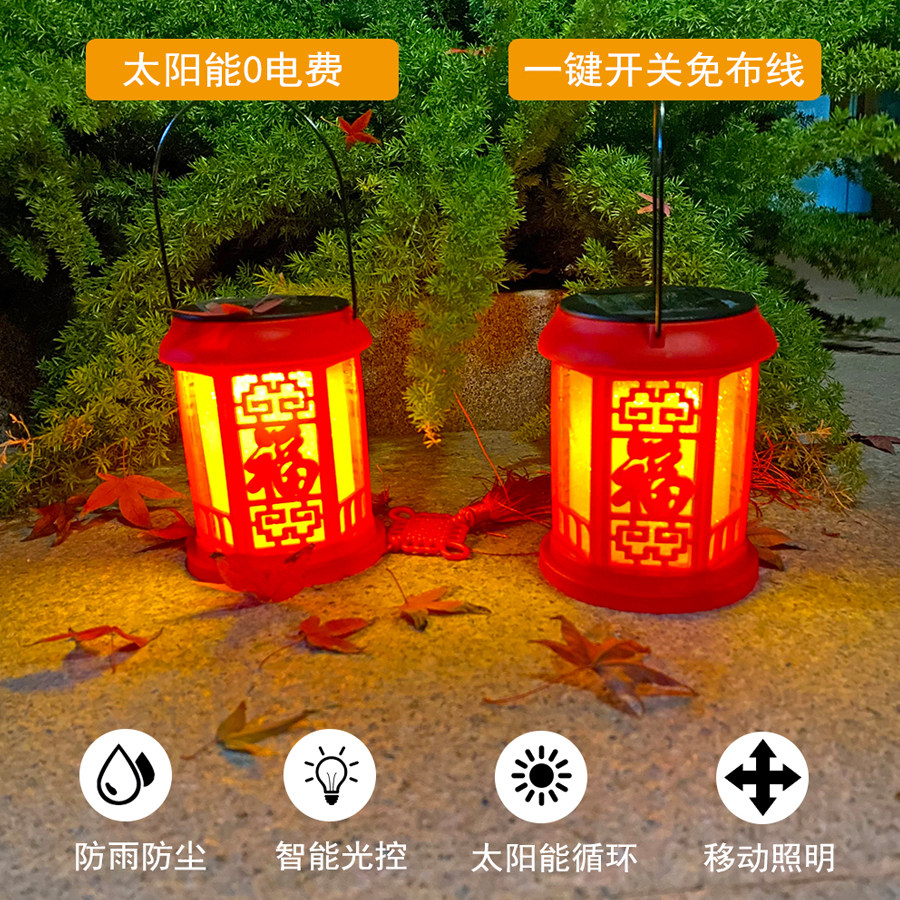 太阳能灯福字大红灯笼新年春节家用大门吊灯庭院户外防水装饰灯