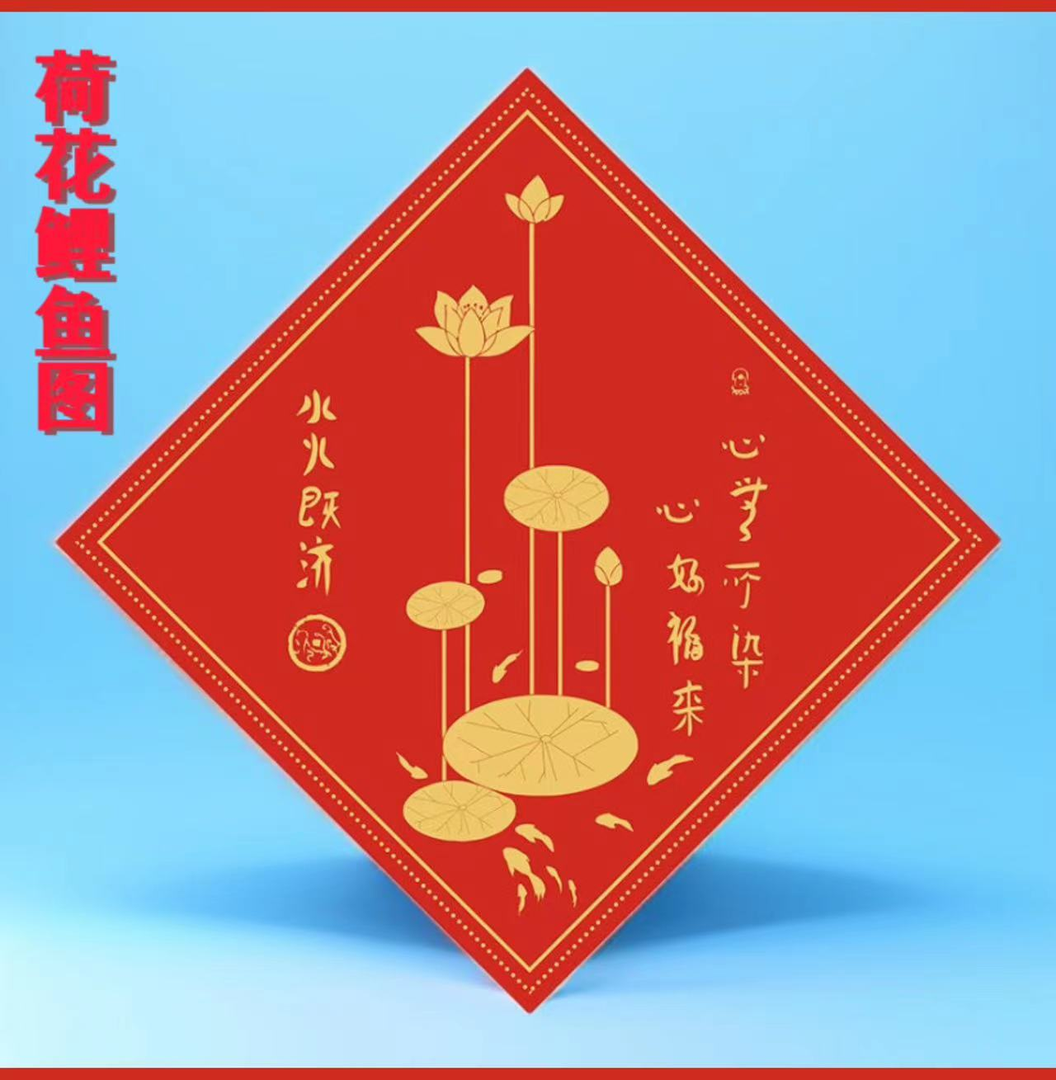 老师荷花图卫生间荷花鲤鱼莲花图案厨房水火即济自粘画