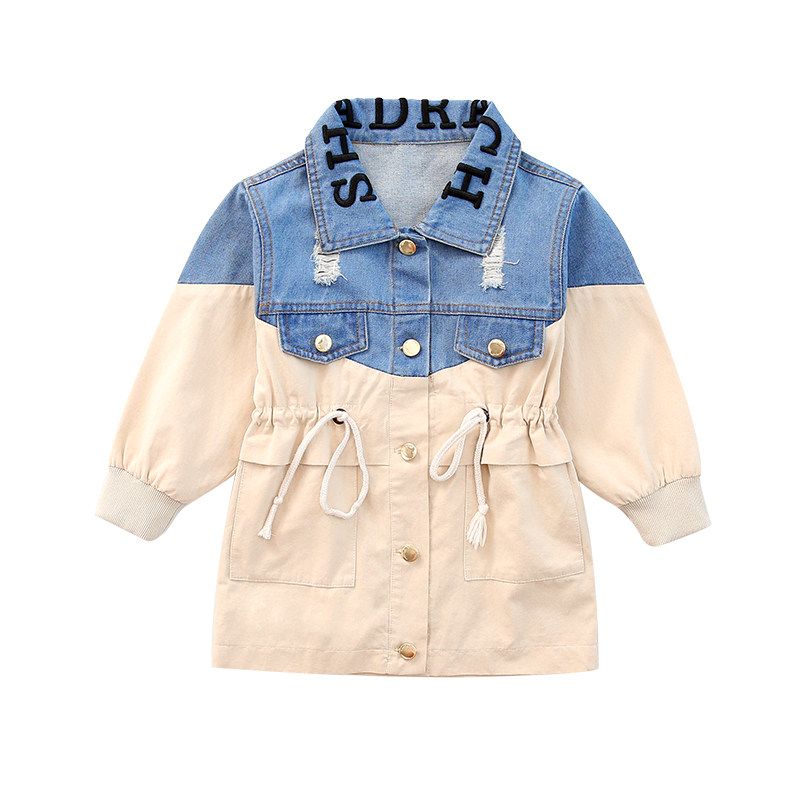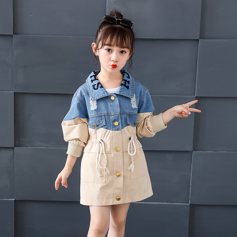 女童牛仔外套春装2025新款洋气儿童风衣中长款春秋时髦小女孩上衣